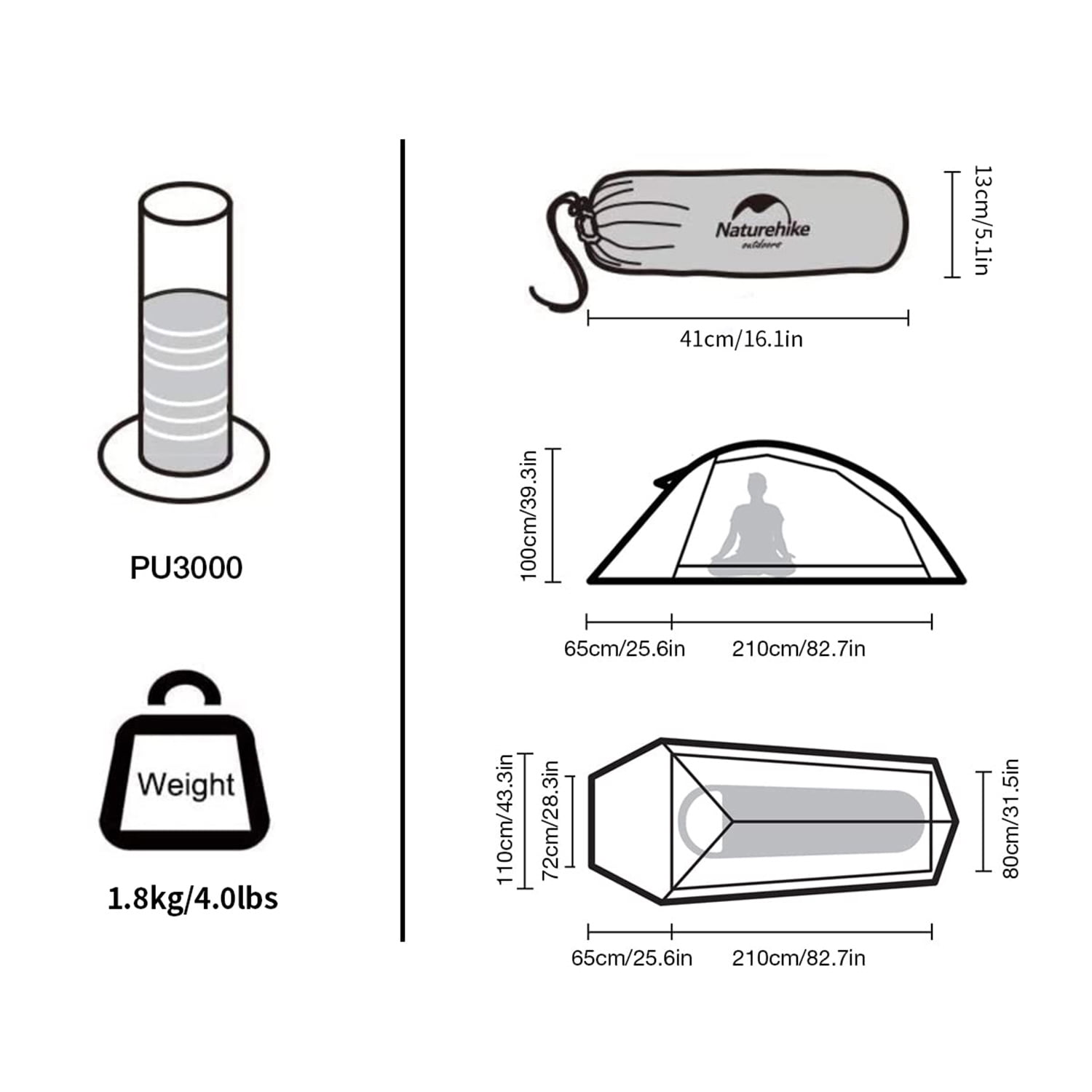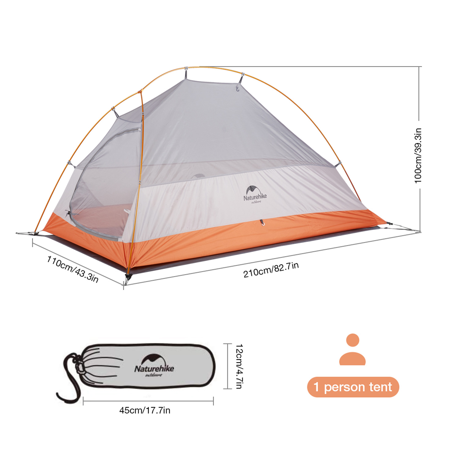 Product Description Previous page Next page Naturehike Cloud Up 1 Person Tent Naturehike Commited to design Light Outdoor Travel Camping gears, the Cloud up 1 Man Tent is lightweight for outdoor backpacking, camping, trekking, cycling. Two kinds of materials and six colors for you to choose. Does the Cloud up 1 Person Tent come with ground sheet(footprint)? Yes, the cloud up 1 Person Tent comes with a ground sheet (footprint), and the footprint is perfect for the Cloud up 1 Person Tent, it works pretty well. Is the naturehike cloud-up 1p tent really freestanding? Yes , it does support itself effectively. The vestibule needs to be pegged out at the front to be effective, you could use a weight on each corner in a pinch though, and the tent sits better when the four corners of the floor are pegged out. Can it be pitched with just the fly? Yes, the tent fly and inner tent can be used separately. Is this good for winter in snow? No, this cloud up 1 person tent is a 3 season backpacking tent without snow skirt. Naturehike Lightweight Backpacking Tent Cloud up 1 Person Tent Add to Cart VIK 1 Person Tent Add to Cart Cycling 1 Person Tent Add to Cart Cloud up 2 Person Tent Add to Cart Cloud up 3 Person Tent See Details Customer Reviews 4.4 out of 5 stars 1,144 4.3 out of 5 stars 414 4.5 out of 5 stars 652 4.5 out of 5 stars 2,141 4.5 out of 5 stars 859 Price $119.00$119.00 $119.00$119.00 $99.99$99.99 $135.00$135.00 — Capacity 1 Person Tent 1 Person Tent 1 Person Tent 2 Person Tent 3 Person Tent Item Weight 3.3 lbs 2.95lbs 3.63lbs 3.97 lbs 5.9lbs Item Dimensions 82.7 x 43.3 x 39.7 inch 82.7 x 37.4 x 37.4 inch 80.7 x 37.4 x 43.3 inch 82.7 x 49.2 x 41.3 inch 84.6 x 70.8 x 43.3 inch Material 20D Silicone coated Nylon 15D Silicone coated Nylon 20D Silicone coated Nylon 20D Silicone coated Nylon 210T Polyester Packed Size 16.1 x 5.1 x 5.1 inch 18 x 6 x 6 inch 15.7 x 5.9 x 5.9 inch 17x 4 x 4 inch 20 x 7.1 x 7.1 inch