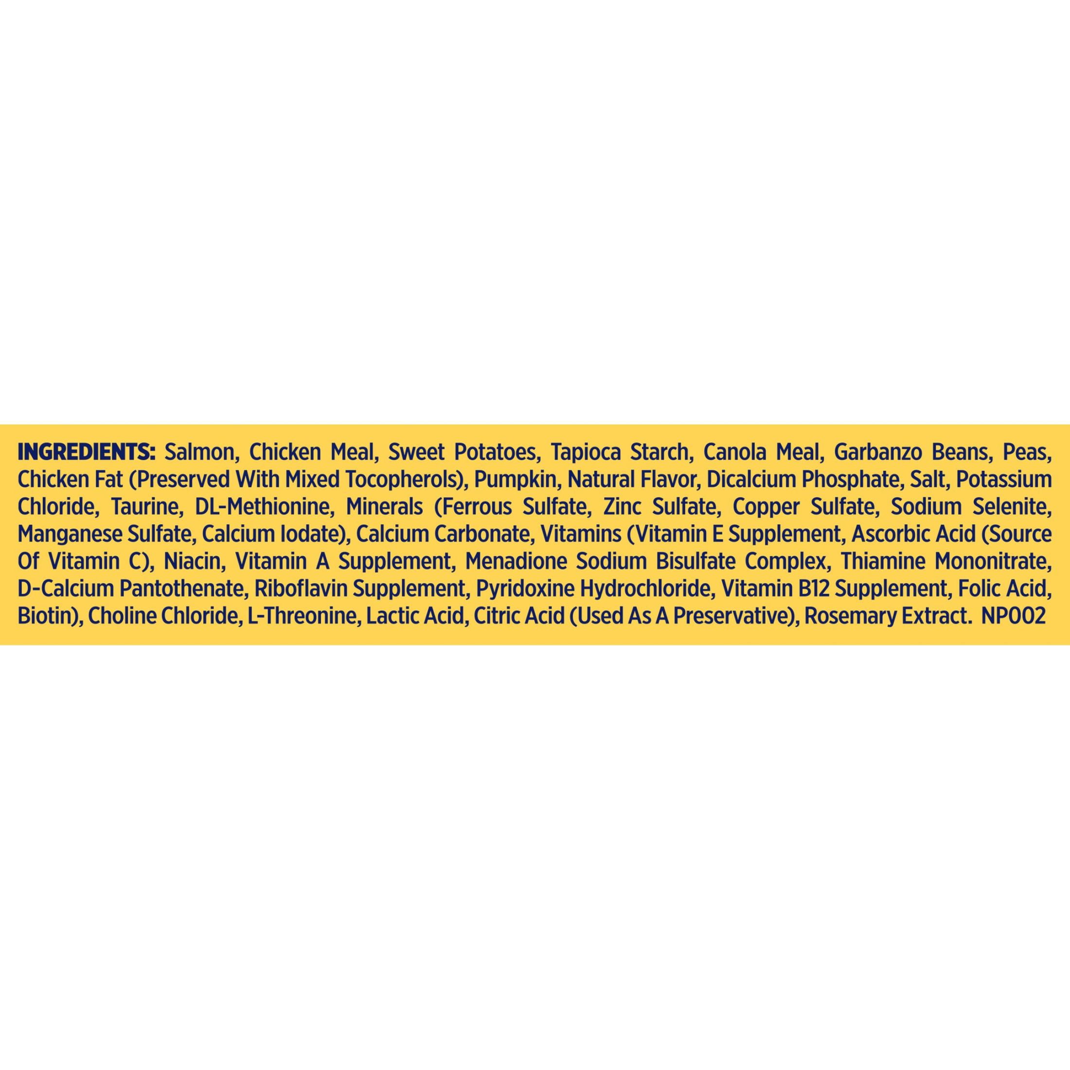 Nature’s Recipe Grain Free Salmon, Sweet Potato & Pumpkin Recipe dry dog food makes it easier (and more satisfying) than ever to fuel your dog. This dog food is made with real salmon as the number one ingredient, along with nutrient-dense carbohydrate sources like sweet potato and pumpkin. Fiber, active nutrients and antioxidants also help support digestion, immune system health and many other aspects of your dog’s overall health with every bite. We don’t include anything that would cause our recipe to fall short of amazing —there’s no added corn, wheat or soy protein, no poultry by-product meal and no artificial flavors or preservatives. Pick up a bag for your best buddy today.