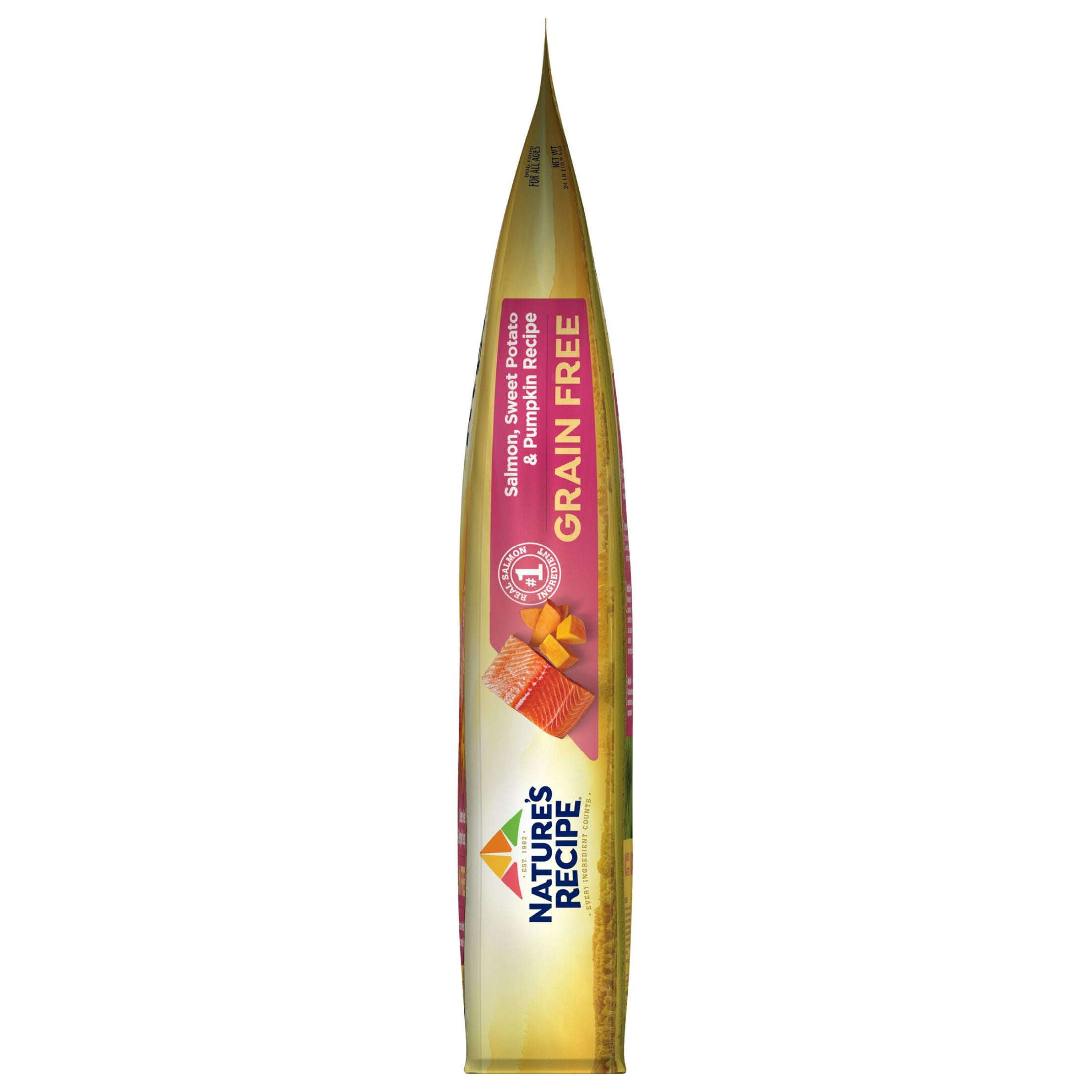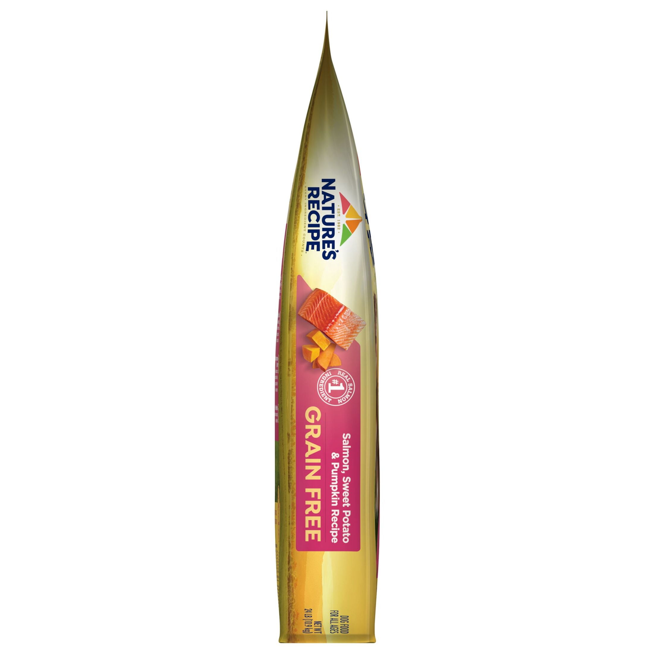 Contains one (1) 24-pound bag of Nature′s Recipe grain free dry dog food Number-one ingredient is real salmon, a quality protein source that helps maintain optimal muscle strength Fiber from sweet potatoes and pumpkin helps support digestion and immune system health Natural dog food with added vitamins, minerals and nutrients — no poultry by-products or artificial colors, preservatives or flavors, and no added corn, wheat or soy Delicious, premium nutrition that′s honestly made and reasonably priced