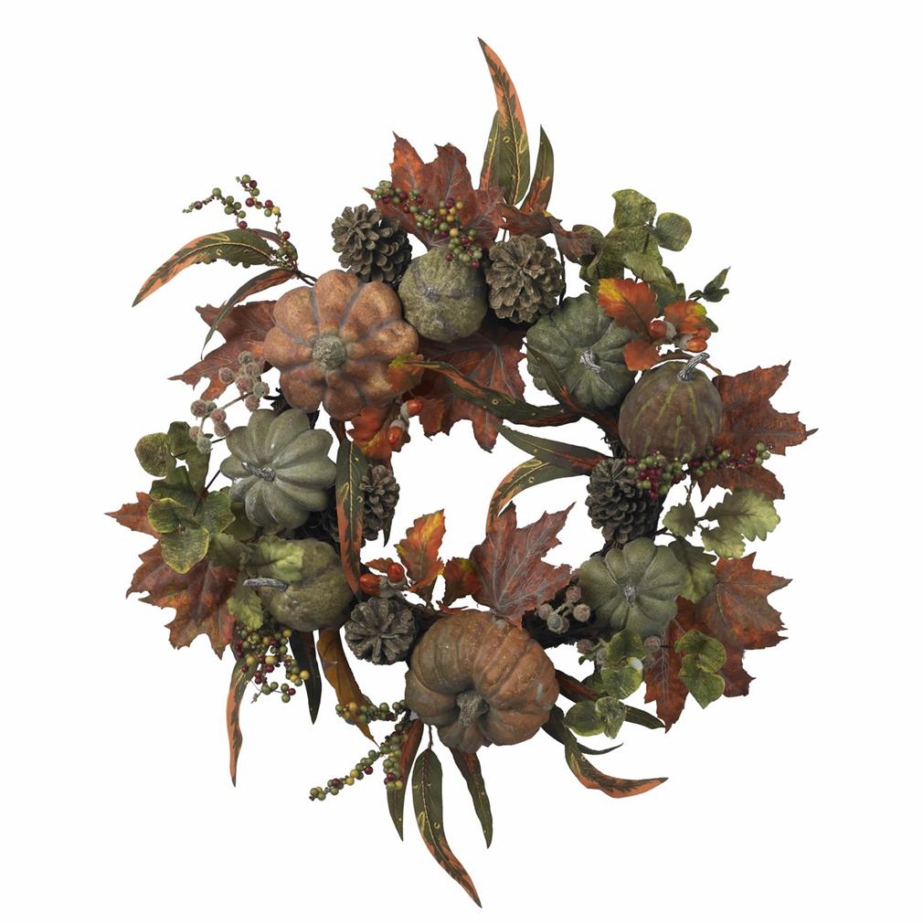 Nearly Natural 24in. Pumpkin & Gourd Thanksgiving Artificial Wreath (Assorted Colors)