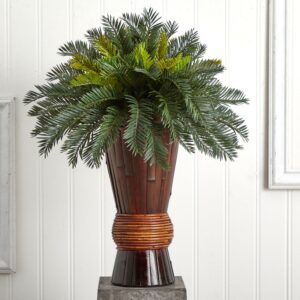 Nearly Natural 29 Green Cycas with Bamboo Artificial Plant in Vase