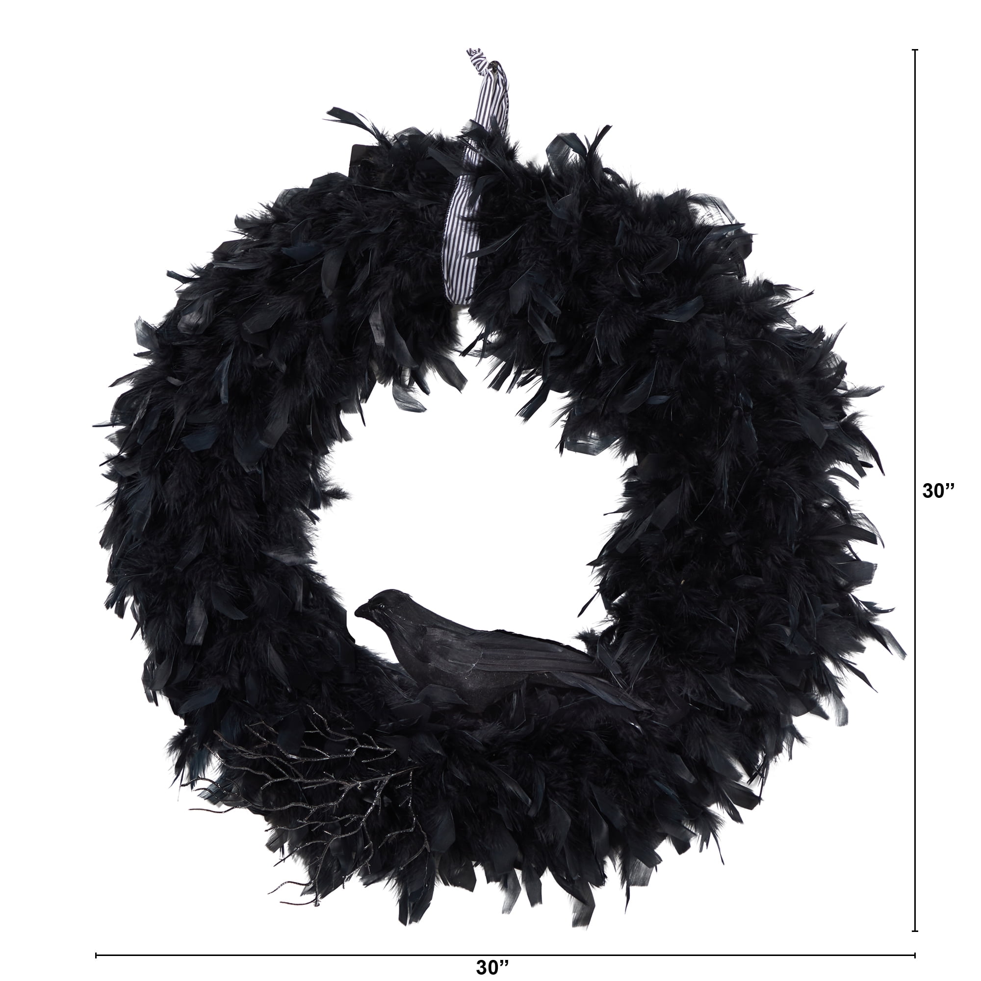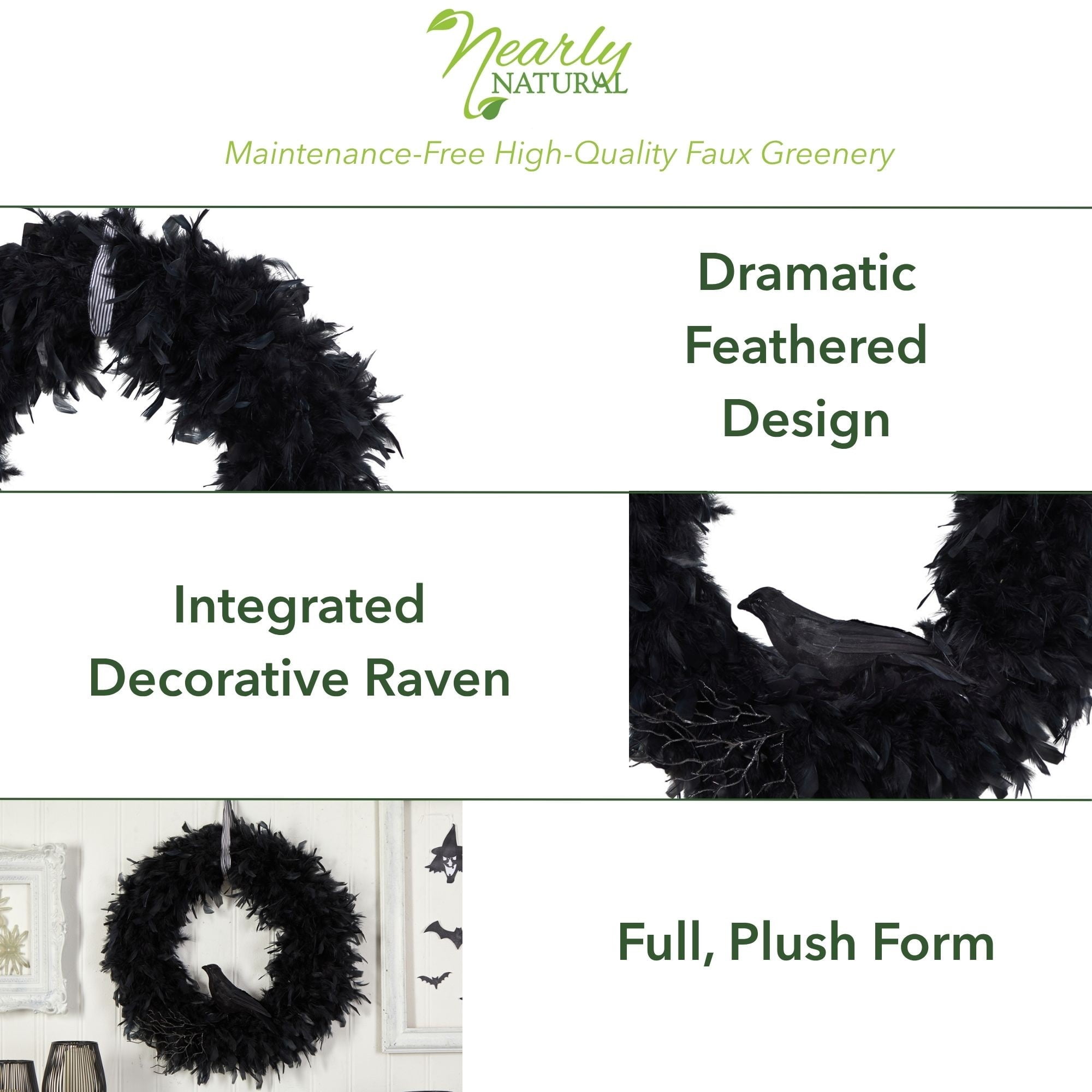 Nearly Natural 30in. Halloween Raven Feather Wreath
