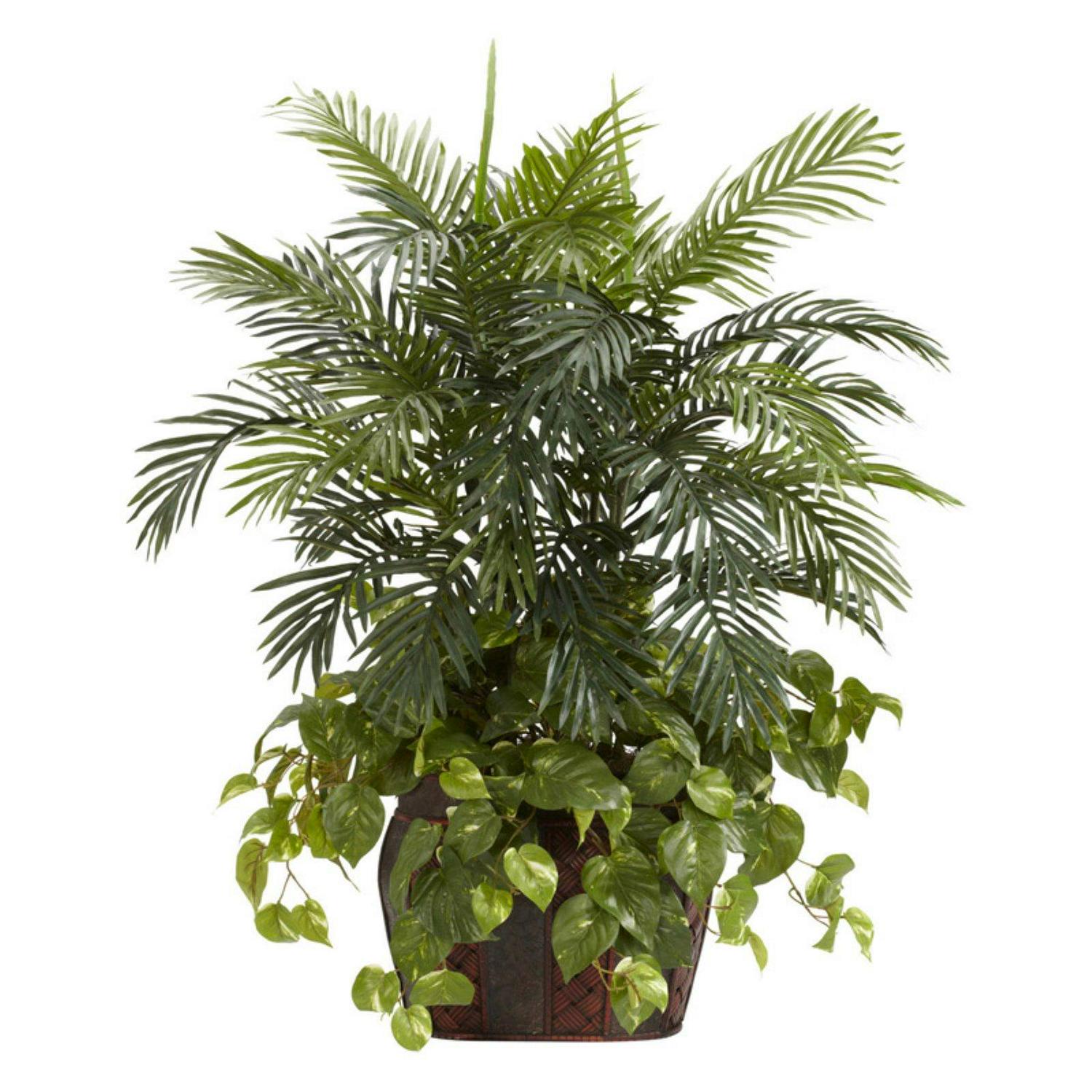 Nearly Natural 4.5ft. Plastic and Polyester Double Areca and Pothos Artificial Plant with Vase, Green: