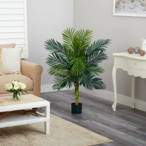 Nearly Natural 4′ Golden Cane Palm Artificial Tree, Green