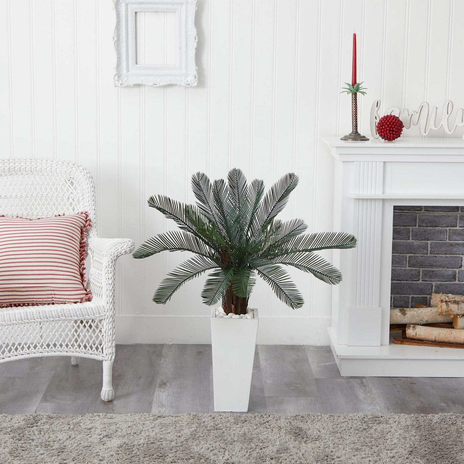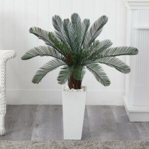 Nearly Natural 40in. Cycas Artificial Tree in White Tower Planter UV Resistant