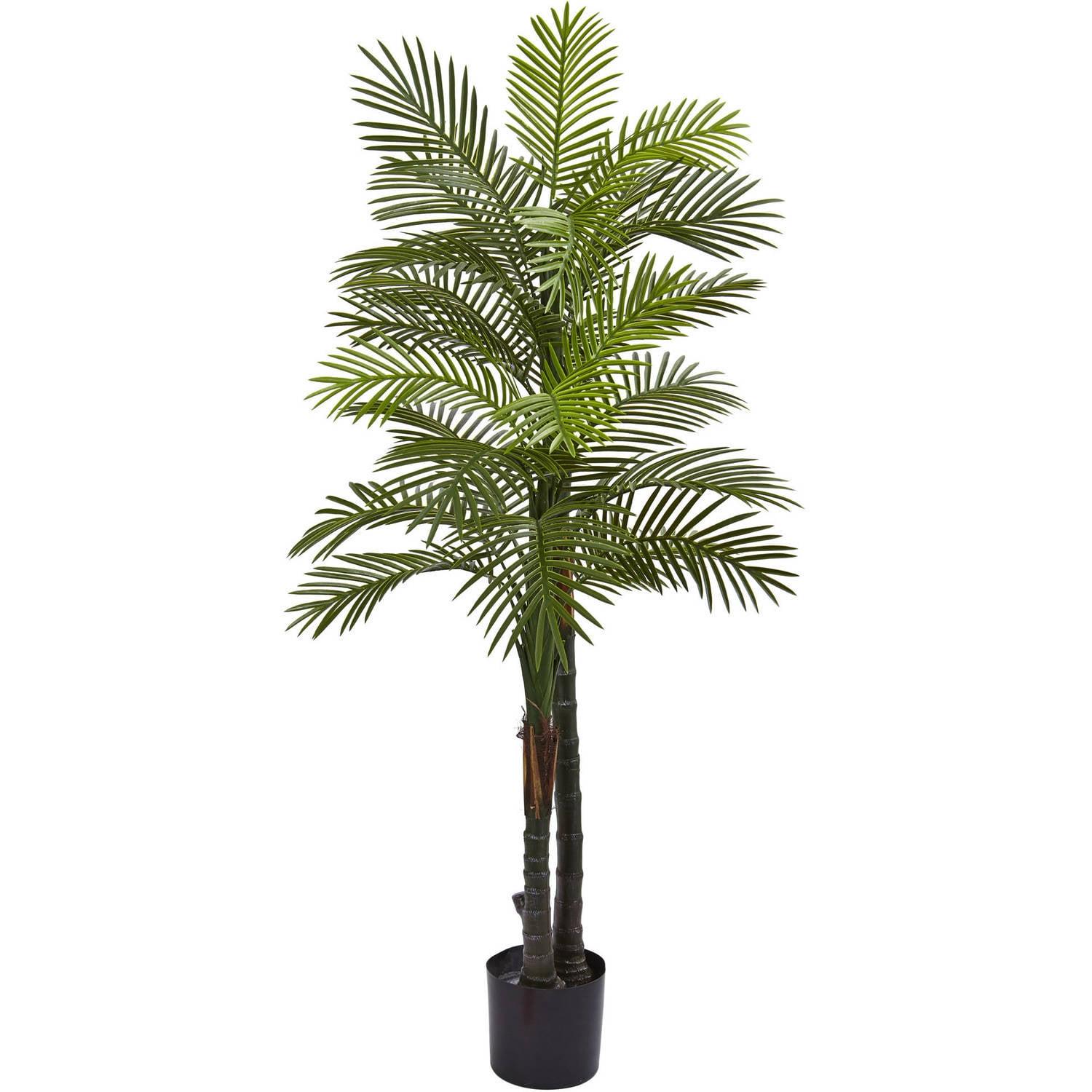 Nearly Natural 5.5ft. Double Robellini Palm Artificial Tree Uv Resistant, Indoor/Outdoor, Green: