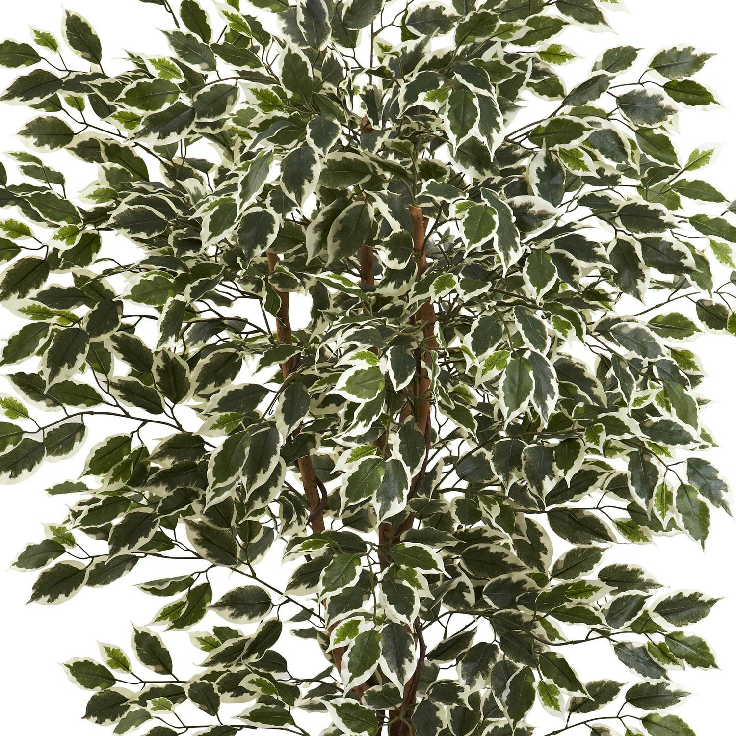 Tropical vacations never have to come to an end when you place one of these Hawaiian Ficus Trees in your home or office. Providing a sense of Aloha , this aesthetically pleasing arrangement is sure to delight, no matter the weather outside. Boasting a full display of rich green and white variegated foliage, the 1,008 leaves that decorate this tree bring you back to days of warm waters and sandy beaches.