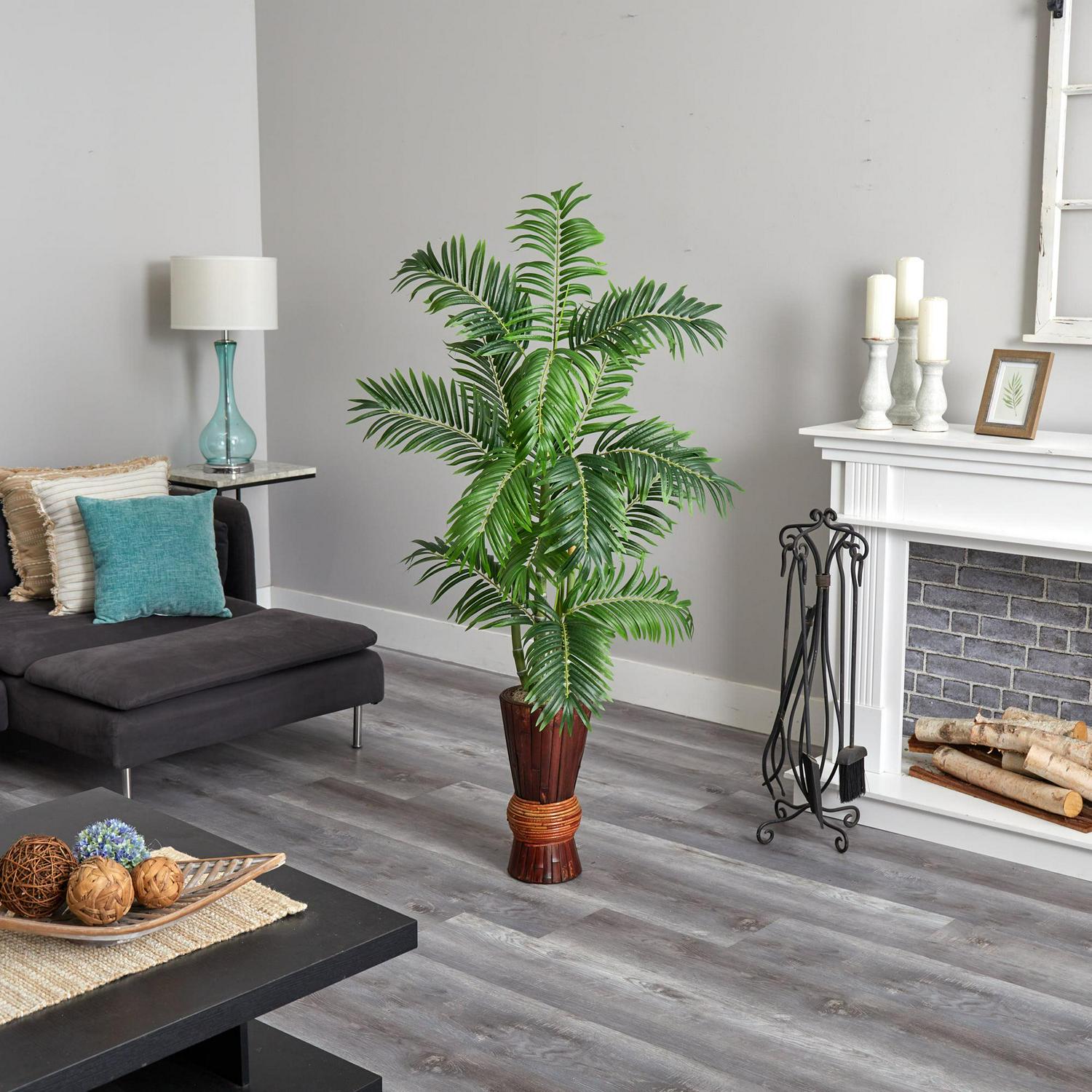 Nearly Natural 62 Plastic and Polyester Areca Artificial Tree with Decorative Planter, Green