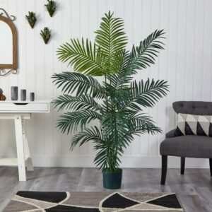 Kickback and reminisce of a warm day at the beach no matter what the current weather with this stunningly natural 72″ Paradise palm. A full 6 feet tall, this tree will have you daydreaming of the warm sand under your feet. A total of fifteen fronds grace this tropical beauty, each decorated with an abundance of thin feathery leaves. Best of all, this carefree creation will maintain its healthy appearance with out water or sunlight.