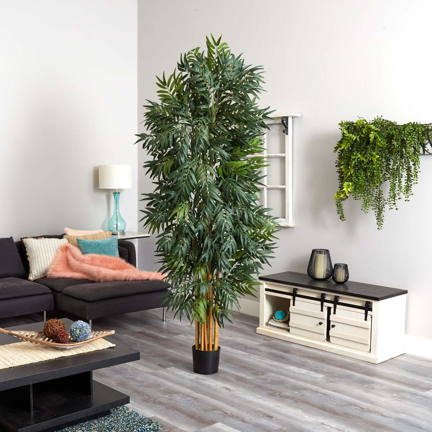Nearly Natural 7.5’Phoenix Palm Tree Here we go – the big daddy of artificial palm trees. This stunning, regal Phoenix Palm Tree stands a full 90″ in height (that’s seven and a half feet), with 12 natural-looking trunks that explode in nearly 2,000 palm leaves. It’s a big, bold, beautiful addition to your home or office decorating, and is certain to make the tropical statement you are seeking for years to come. Makes a great gift, too.