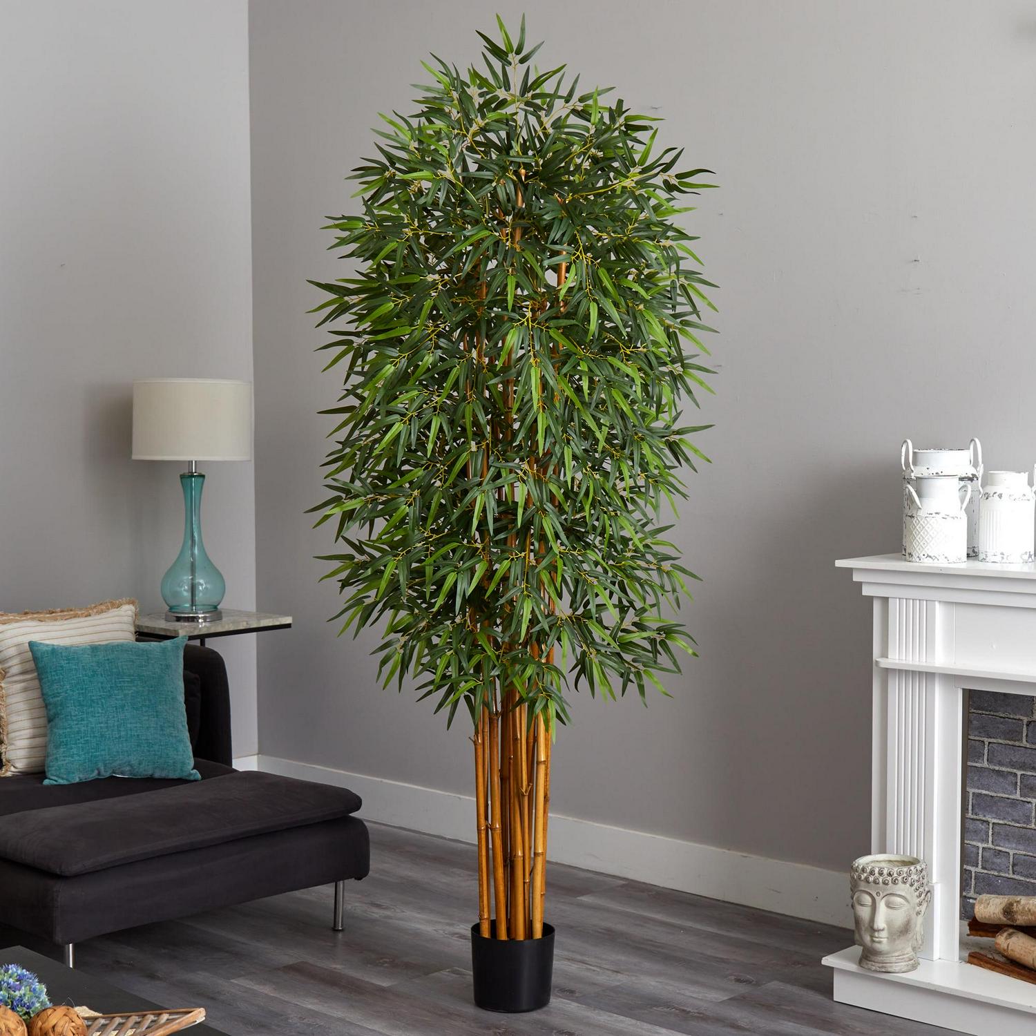 Nearly Natural 7′ Fancy Style Bamboo Silk Tree – Green Need a break from the office This grand Bambusa will have you dreaming of the Asian tropics. At seven feet tall, this lovely tree makes an excellent conversation piece for your work space or home decor. 2275 wispy elongated leaves flock the two separate clusters of shoots. Best of all, this exotic beauty will thrive carefree in any environment.