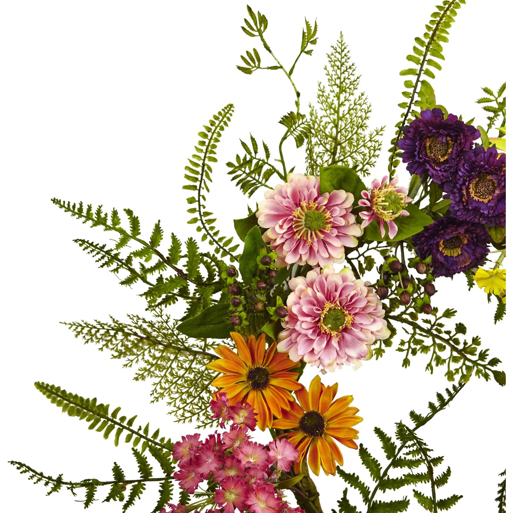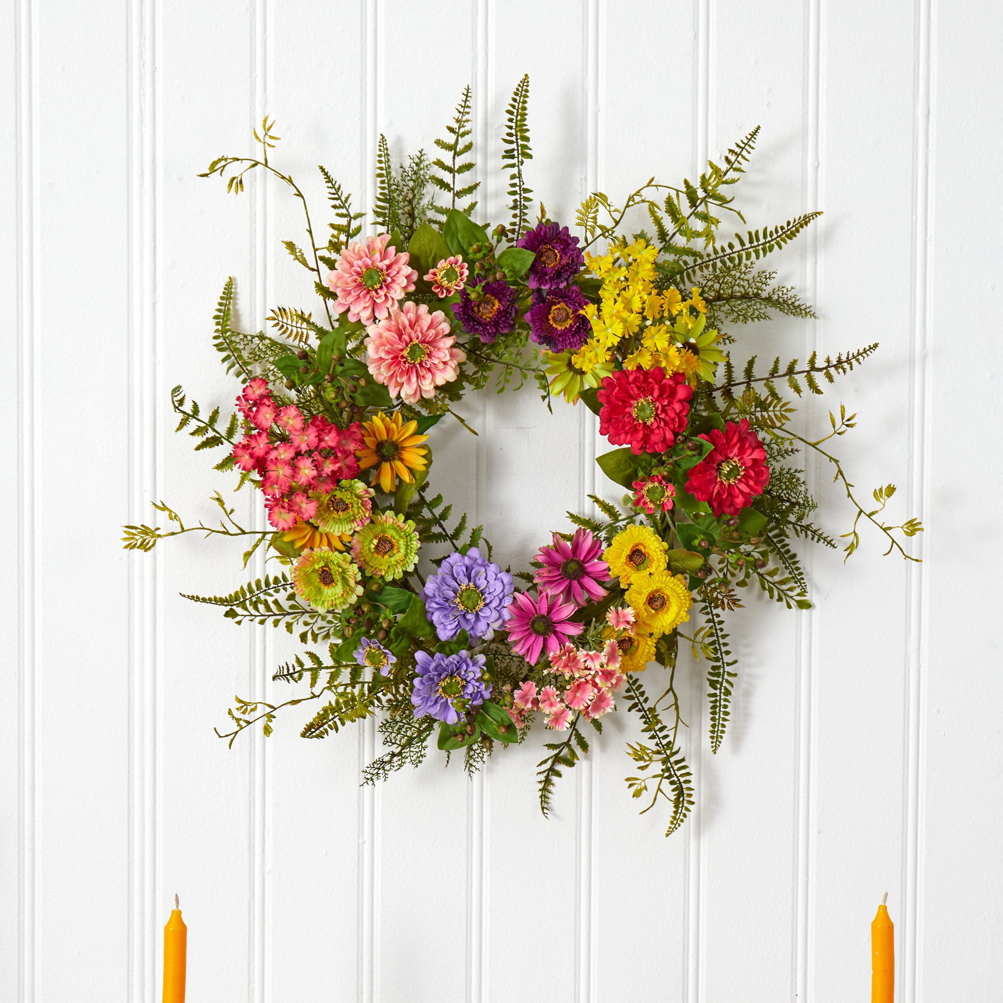 Nearly Natural Mixed Flower Wreath, Multicolored: Dimensions: 22″ Diameter Mixed garden flowers Bursting with springtime colors Great for the entryway Hanging friendly
