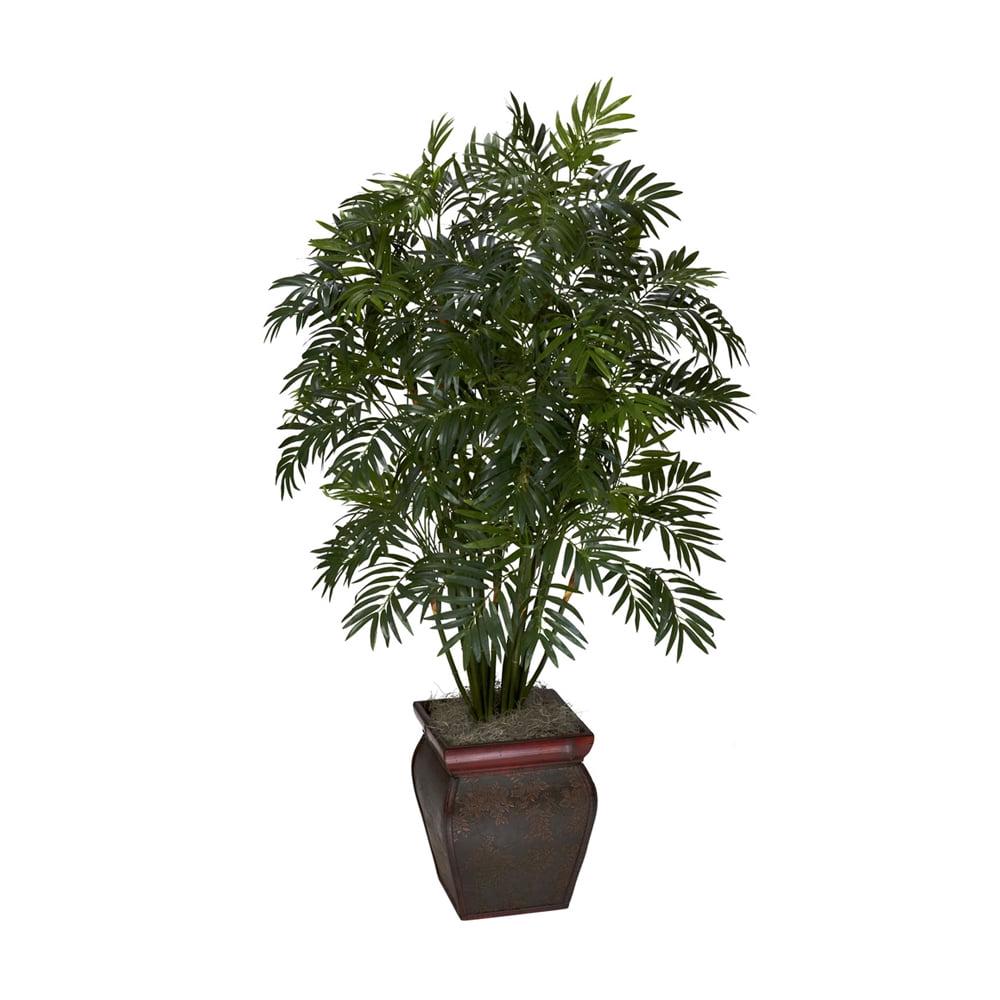 Nearly Natural Mini Bamboo Palm with Decorative Vase Arrangement – Green Bring the tropics to your home or office with this elegant mini bamboo palm silk plant. Featuring a bevy of stalks jutting skyward, and thousands of fronds just waiting for a tropical breeze, this palm will have you reaching for a Pina Colada every time you look at it. But we’re not done – it comes in a beautiful decorative container that adds a touch of class. Perfect for any home or office that needs some sunshine and summer fun.