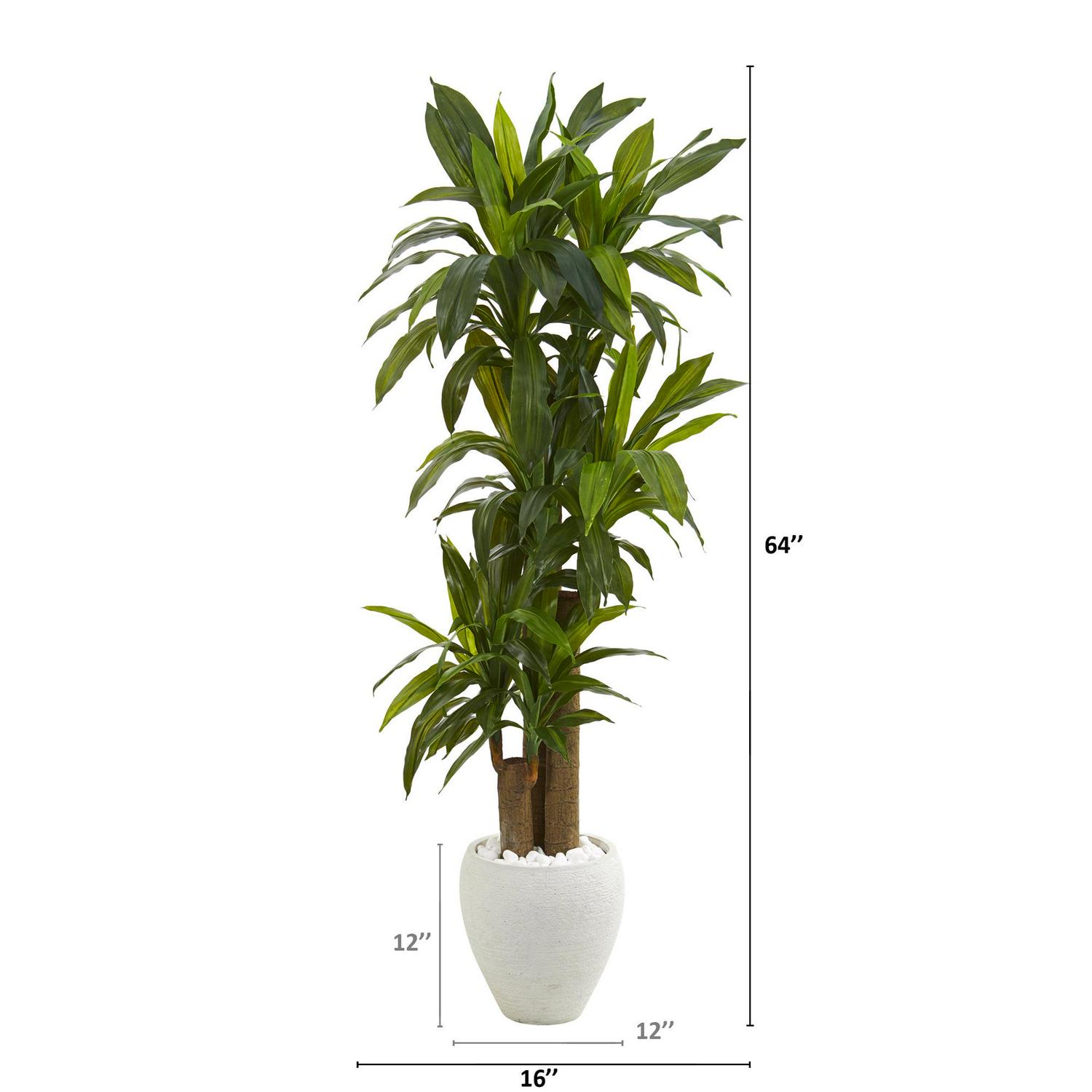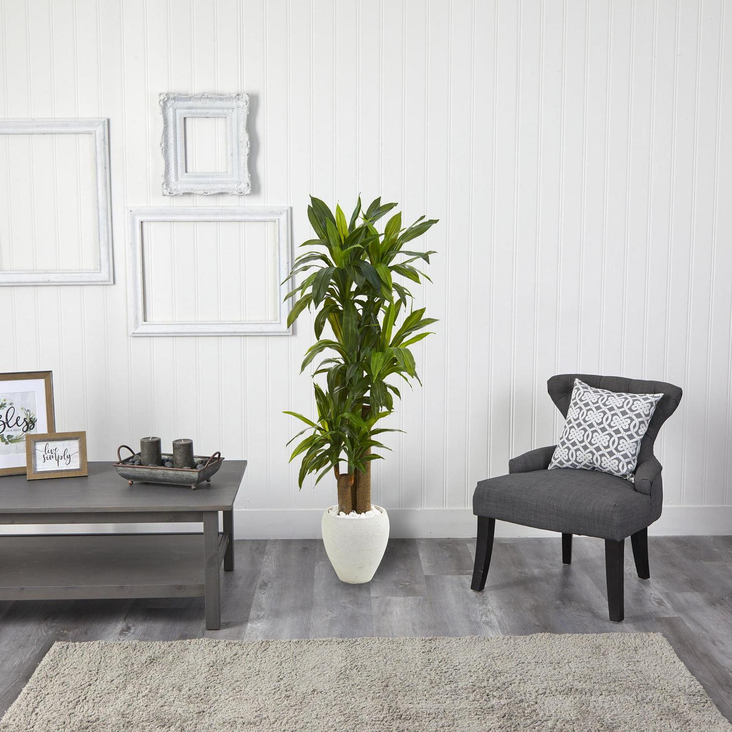 Nearly Natural Plastic Green 64 Corn Stalk Dracaena Artificial Plant in White Planter