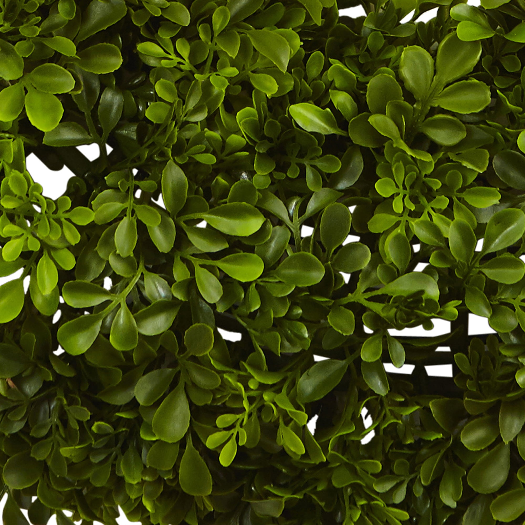 Nearly Natural Bountiful boxwood bundles together for a lush, green wreath arrangement. Intricately placed and finely constructed, this boxwood wreath is perfect to use year round. Customize with black and white ribbon for a chic, farmhouse look, or place with glimmering candles for a holiday display. Silk wreaths are manufactured using synthetic materials, such as polyester material or plastic, and are well designed and constructed to be life-like in appearance. This item will need to be re-shaped when removed from the secure box to allow it to reach its fullest size. Your artificial wreath will look beautiful for years to come; simply wipe clean with a soft dry cloth when needed.