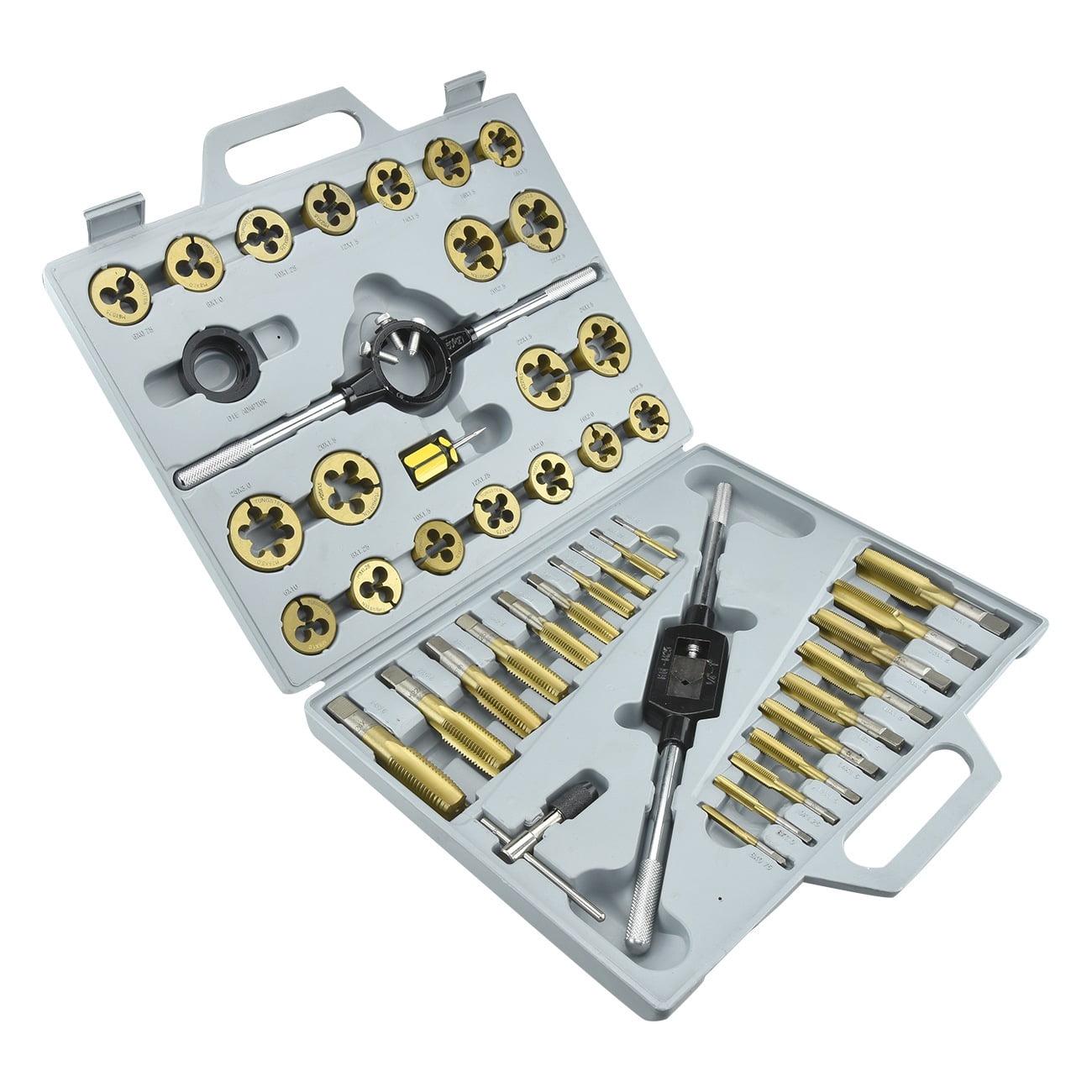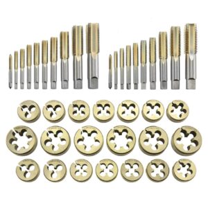 – HIGH-QUALITY THREADING TOOLS: Each tap and die is titanium coated for a precise cut every time. The titanium provides rust and corrosion resistance and extra durability, making these pieces the perfect mechanic accessories.