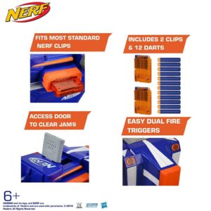 – Nerf Blaster Scooter, Dual Trigger Rapid Fire Action, Includes 2 Clips and 12 Elite Darts