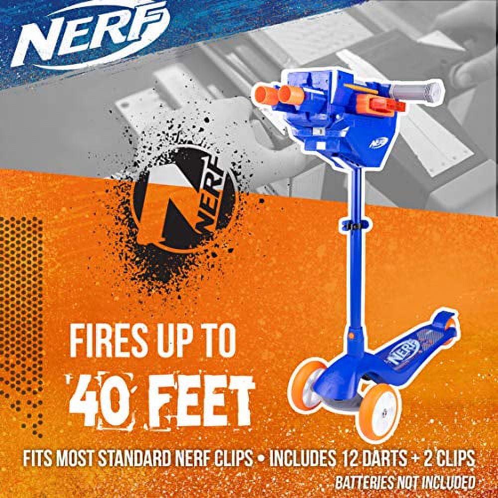 - Nerf Blaster Scooter, Dual Trigger Rapid Fire Action, Includes 2 Clips and 12 Elite Darts