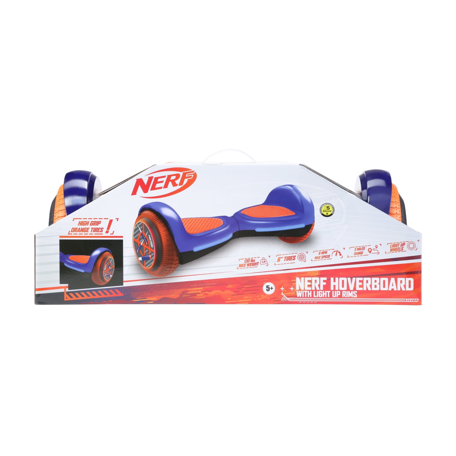 When it comes to kids Hoverboards, look no further than the Nerf Hoverboard with Light Up Wheels! This hoverboard is a blast to ride and features high grip orange tires. The Nerf hoverboard features active balance technology making it a breeze to ride. This balancing technology makes this the perfect hoverboard for both novice and seasoned riders. With a top speed of 6 MPH, and a range of up to 3 miles per charge, this hoverboard is unlike any other hoverboard on the market. This hoverboard has a max weight limit of 130 lbs. and is perfect for ages 5+.