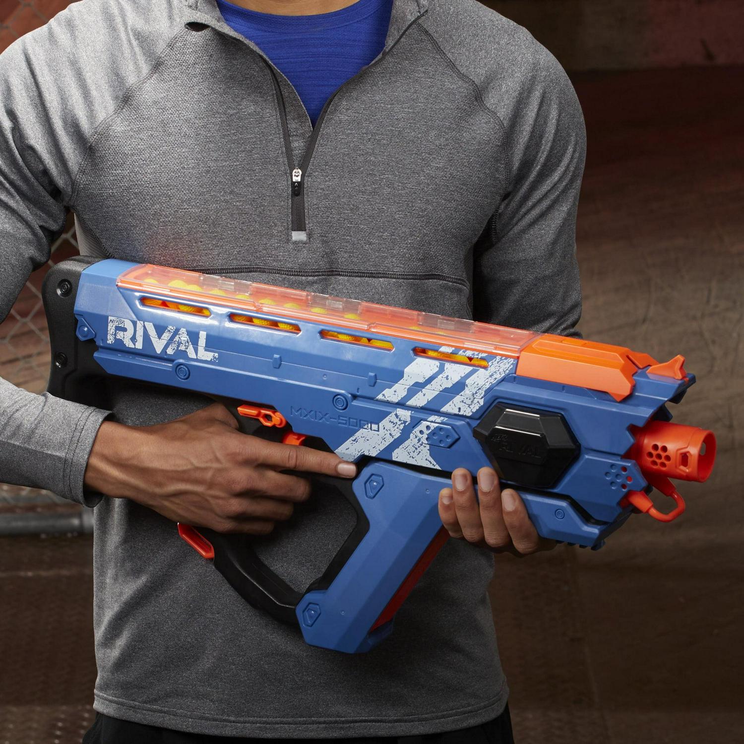 Perses MXIX-5000 Nerf Rival Motorized Blaster (blue) – Fastest Blasting Nerf Rival System, Up to 8 Rounds Per Second – Rechargeable Battery, Quick-Load Hopper