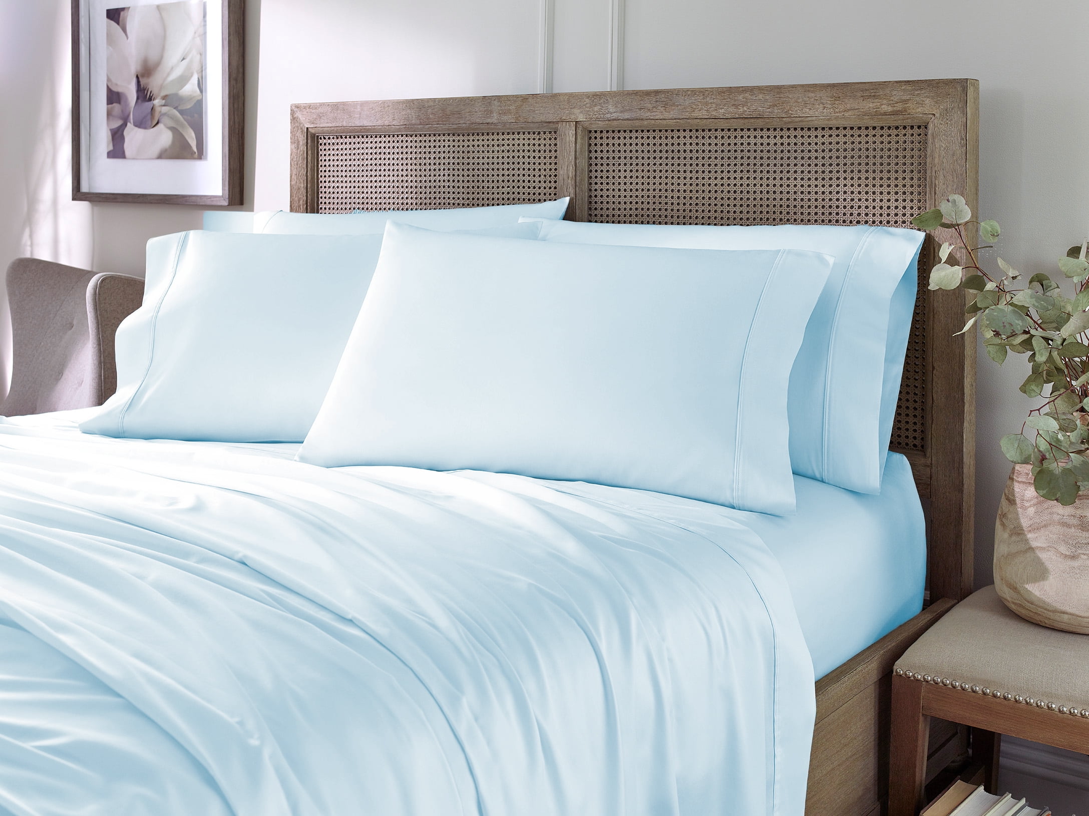 Nestl Bed Sheets Set, Eucalyptus Unique Tencel Blend Fabric Soft Natural, and Durable, 6 Piece, Queen Size Sheets Set – Powder Blue