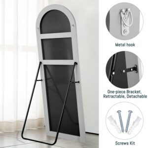 The top of the full body mirror uses an arched top frame design, which makes the entire mirror look very unique and upscale. Large full length dressing mirror enough for you to see your full body. Expand the visual space of the room. The door mirror use scatter-proof and shatter-proof glass, safer, more reassuring. The frame is made of wood, and the corners of the frame are fixed by solid metal screws. When the H-shaped bracket is opened, triangular support will be formed between the bracket and the mirror, which is very stable. The dressing mirror can be leaned to the wall or standing anywhere with the stand, greatly saving your space, easy to operate, no need to worry about taking too much time and effort, The hook on the back is suitable for almost all places indoors or outdoors.