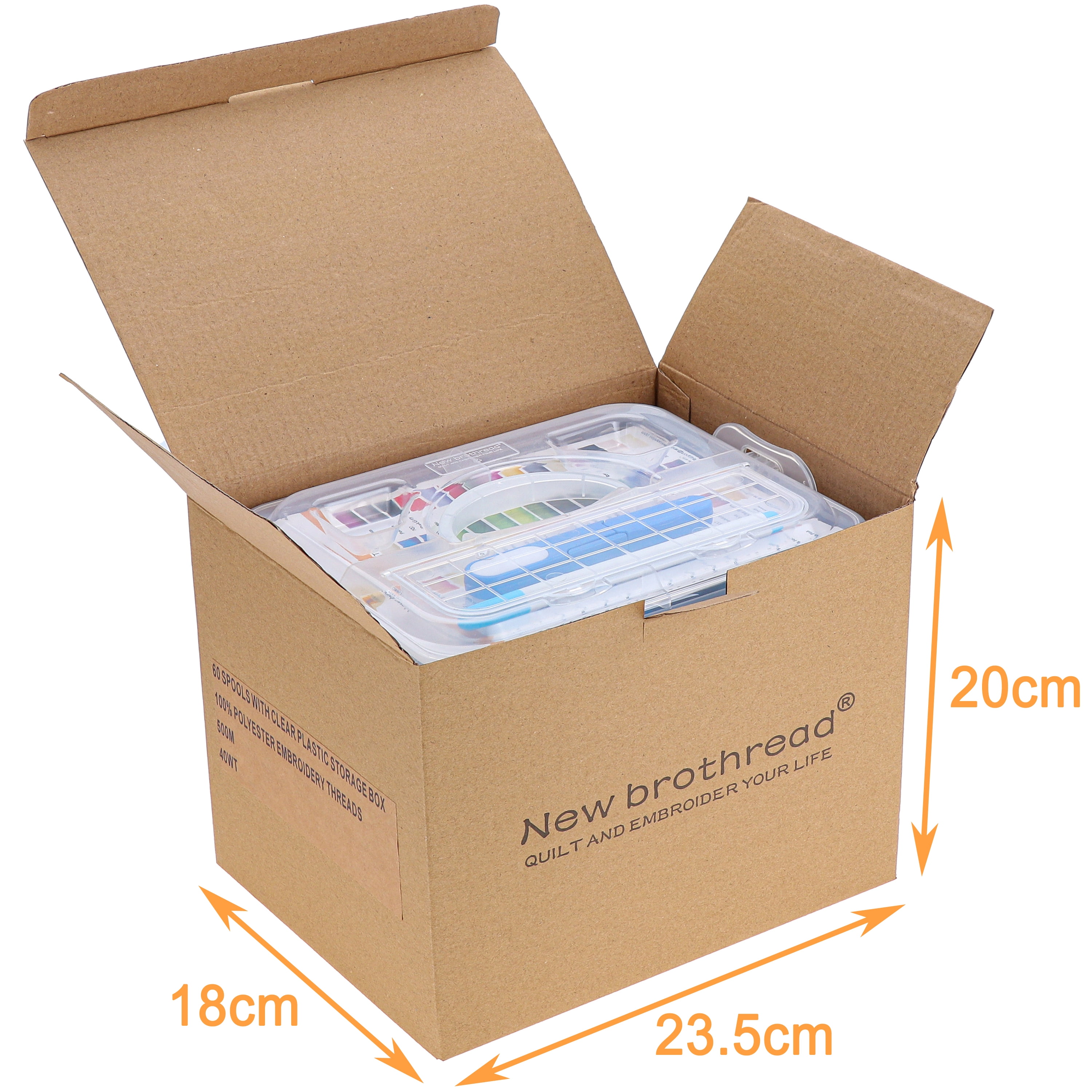 New brothread – EMBROIDER AND SEW YOUR LIFE! New brothread not only makes great embroidery supplies and sewing supplies, but also is a professional manufacturer producing plastic moulding more than 15 years. NOW New brothread makes premium clear plastic storage box to store and carry different embroidery/sewing/quilting threads and other small sewing/embroidery/quilting items. 60 Spools Brother Colors + Clear Plastic Storage Box: High Value 60 Brother colors 500m polyester embroidery machine thread with 3 layers premium clear plastic storage box. Free Thread Nets, 1x Mark Pen, 1x Yarn Snips and 1x Color Chart are also included in the package. Stackable & Lockable Three Layers Clear Plastic Storage Box: All 60 spools of polyester embroidery threads are orderly organized in the storage box with 3 layers. The super transparency of the storage box can help you looking for needed colors from outside easily. There are 20 plastic pins in each layer to hold each spool upwards, it also can prevent the spool from falling down. Multi type of Spools to Store and Portable Box: The clear plastic storage box not only can store New brothread 500m & 1000m embroidery machine threads, but also can store lots of mini spools sewing and embroidery threads from different brands. 100% Polyester Embroidery Machine Thread: Super Color Fastness, High Strength and Exceptional Luster, all these Excellent Characters are based on the material of our embroidery machine thread: 100% Polyester!!! Lower risks of breaking or fraying, Elasticity and Tenacity of polyester also reduce risks of looping and puckering of Polyester Embroidery Machine Thread. New brothread Polyester Embroidery Machine Thread always think what you think, do what you do, love what you love.