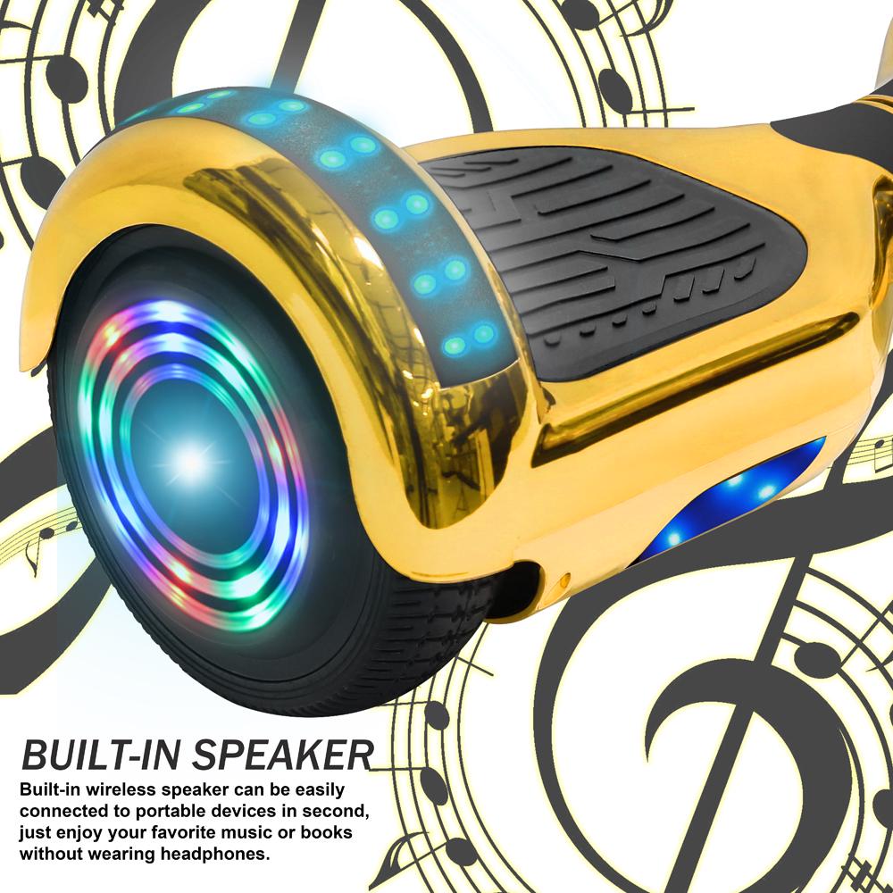 – Built-in Wireless Speaker can be easily connected to portable devices in second, just enjoy your favorite music or books without wearing headphones. Make your Hoverboard the coolest one with extraordinary sound effects.