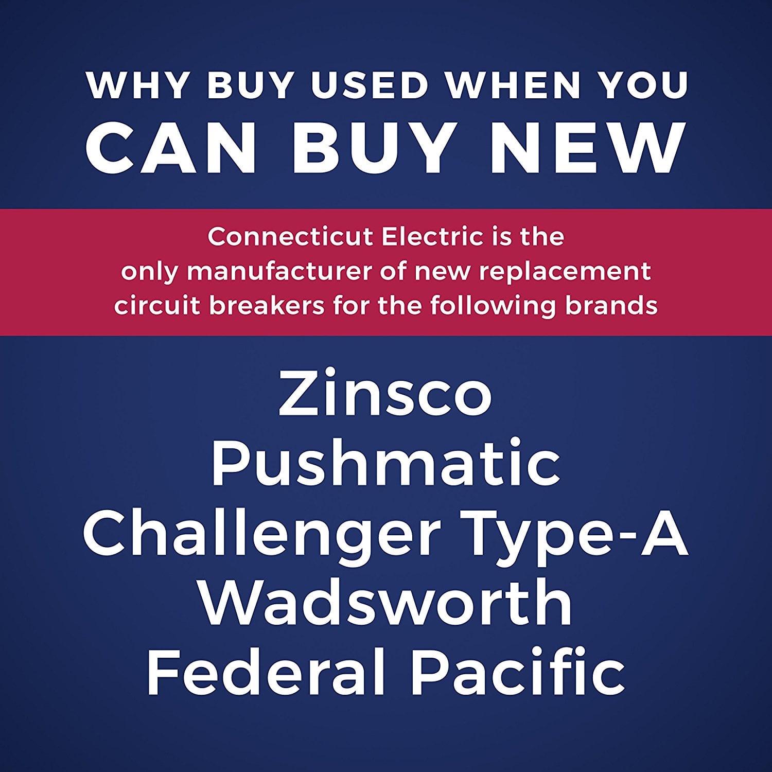 New Zinsco QC50 Replacement. Two Pole 50 Amp Thick Series Manufactured by Connecticut Electric