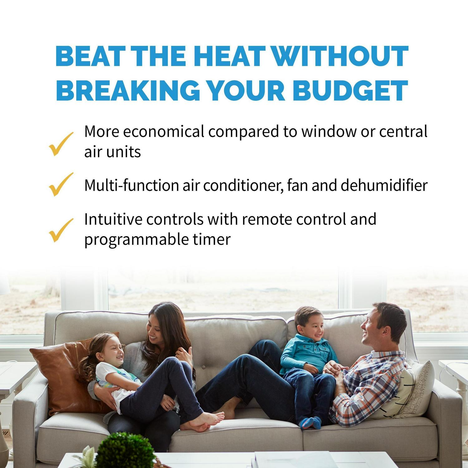 – All-in-one air conditioner, fan and dehumidifier provides total relief in hot and humid climates.