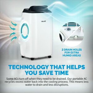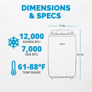 Newair Dual Hose Portable AC 12,000 BTU, Cools Up To 248 sq. ft , White, Easy Setup Air Conditioner With Window Venting Kit, Self-Evaporative System, Quiet Operation, Dehumidifying, Remote and Timer