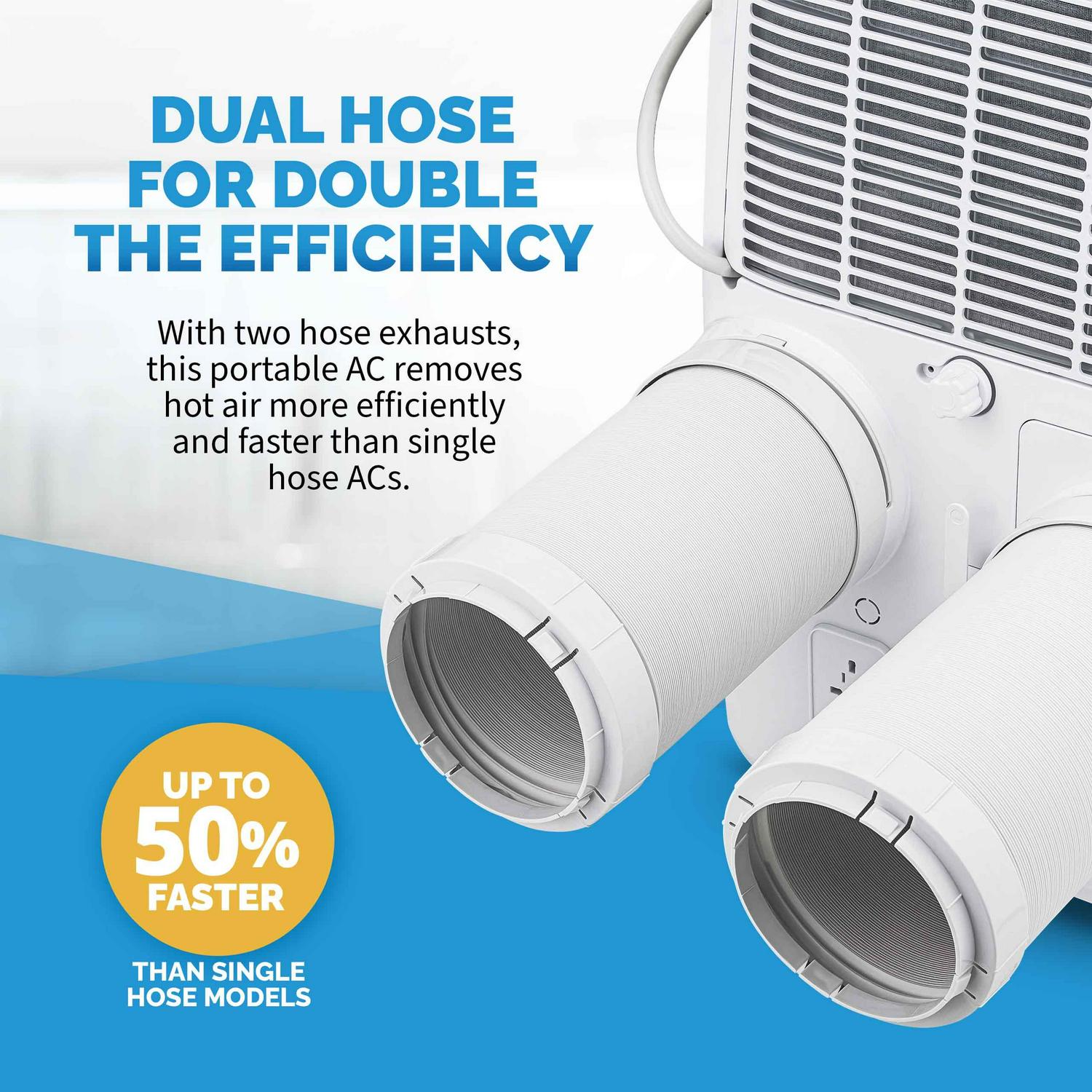 - Dual hose room air conditioner brings ultra-fast cooling to your space