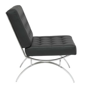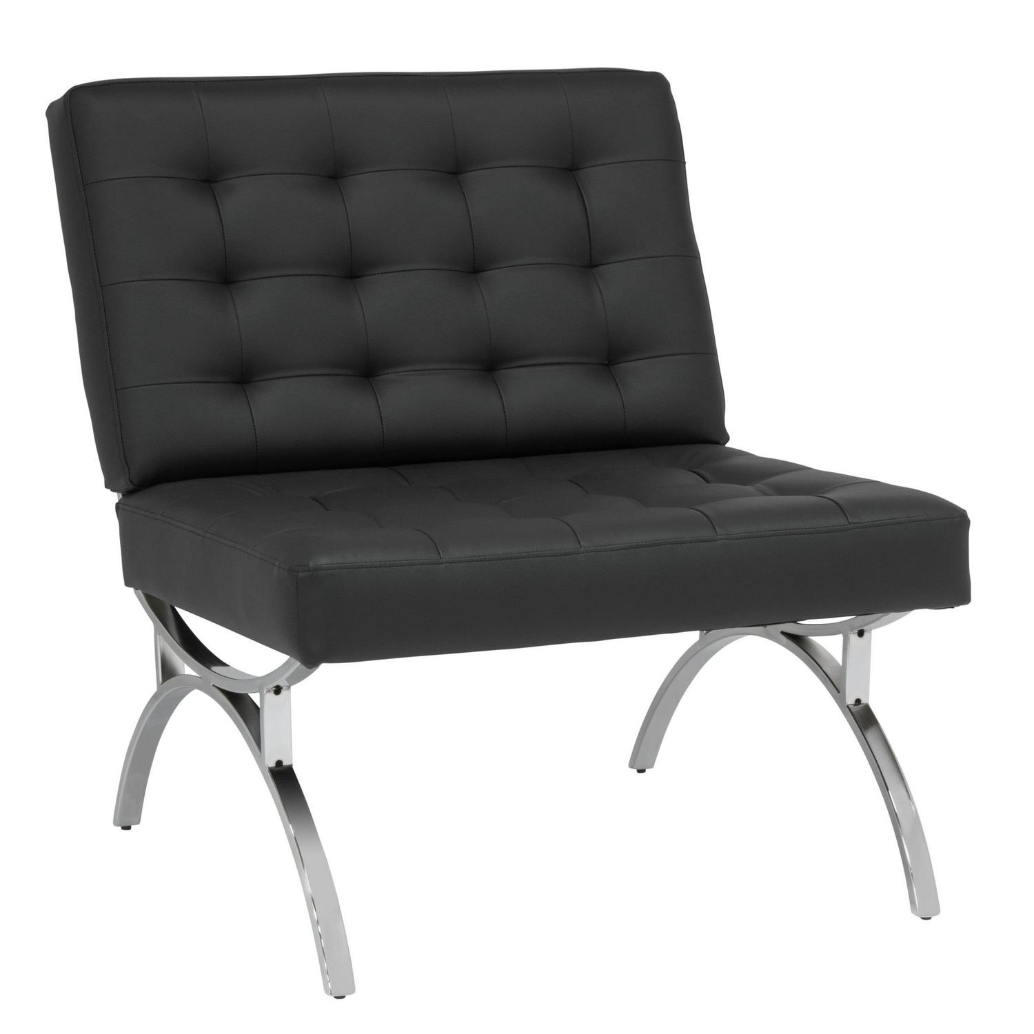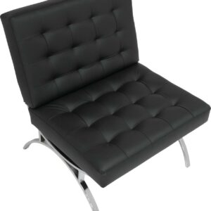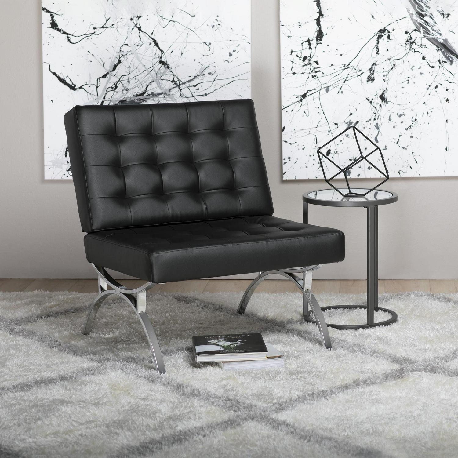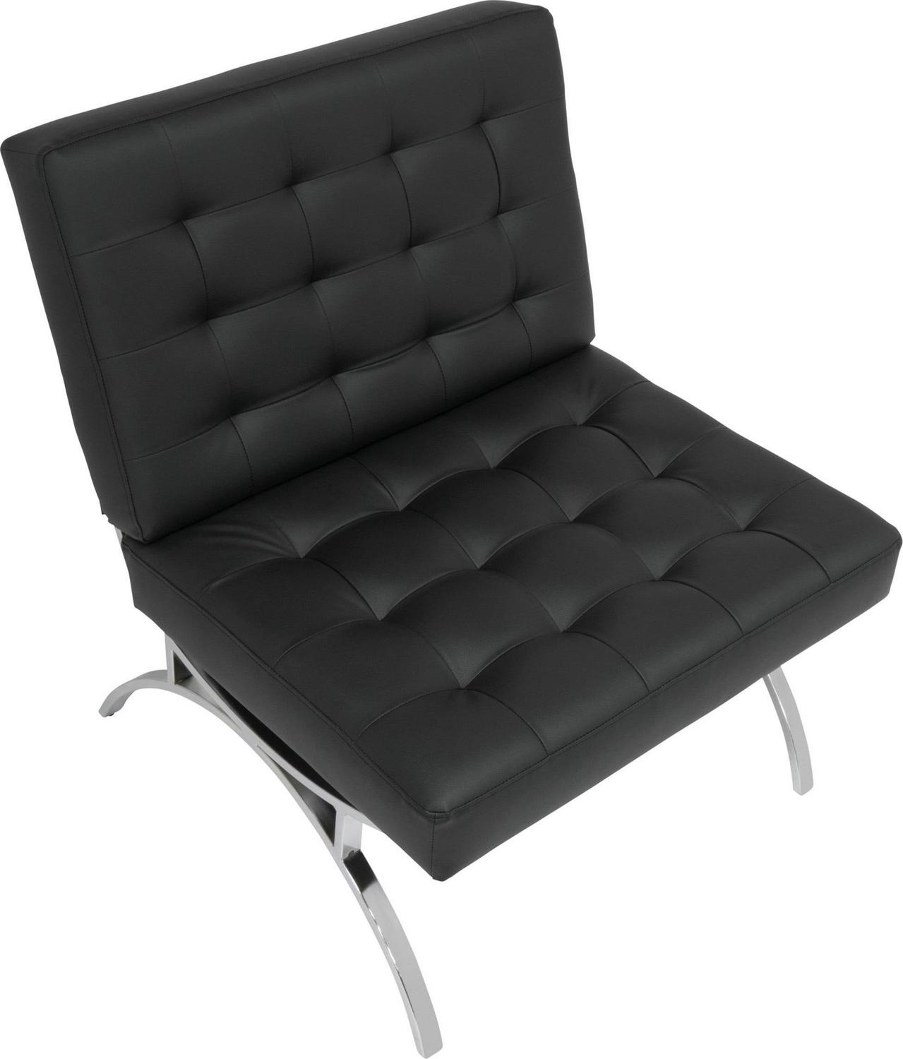 Newel Modern Accent Chair Blended Leather and Chrome Metal Frame in Chrome and Black