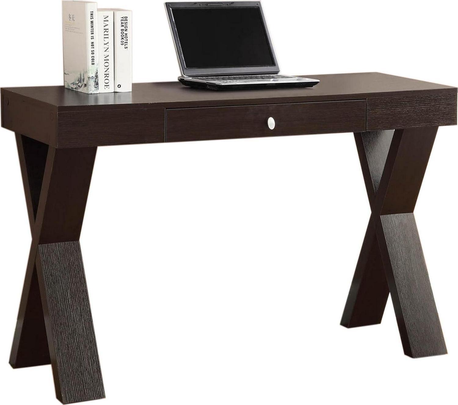 Newport Desk with Drawer, Espresso Available in multiple finishes, you are bound to find the perfect Convenience Concepts Newport Desk to fit into your home. Featuring a spacious Desktop surface that is great for computing or writing, you will be sure to finish any project or assignment that comes your way. The sleek sliding single drawer with a stainless steel pull, offers plenty of room to store your pens, paper and other miscellaneous office supplies. With beautiful X legs, not only is the Newport Desk fully functional, Its a statement piece as well.