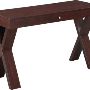 Newport Desk with Drawer, Mahogany Available in multiple finishes, you are bound to find the perfect Convenience Concepts Newport Desk to fit into your home. Featuring a spacious Desktop surface that is great for computing or writing, you will be sure to finish any project or assignment that comes your way. The sleek sliding single drawer with a stainless steel pull, offers plenty of room to store your pens, paper and other miscellaneous office supplies. With beautiful X legs, not only is the Newport Desk fully functional, Its a statement piece as well.
