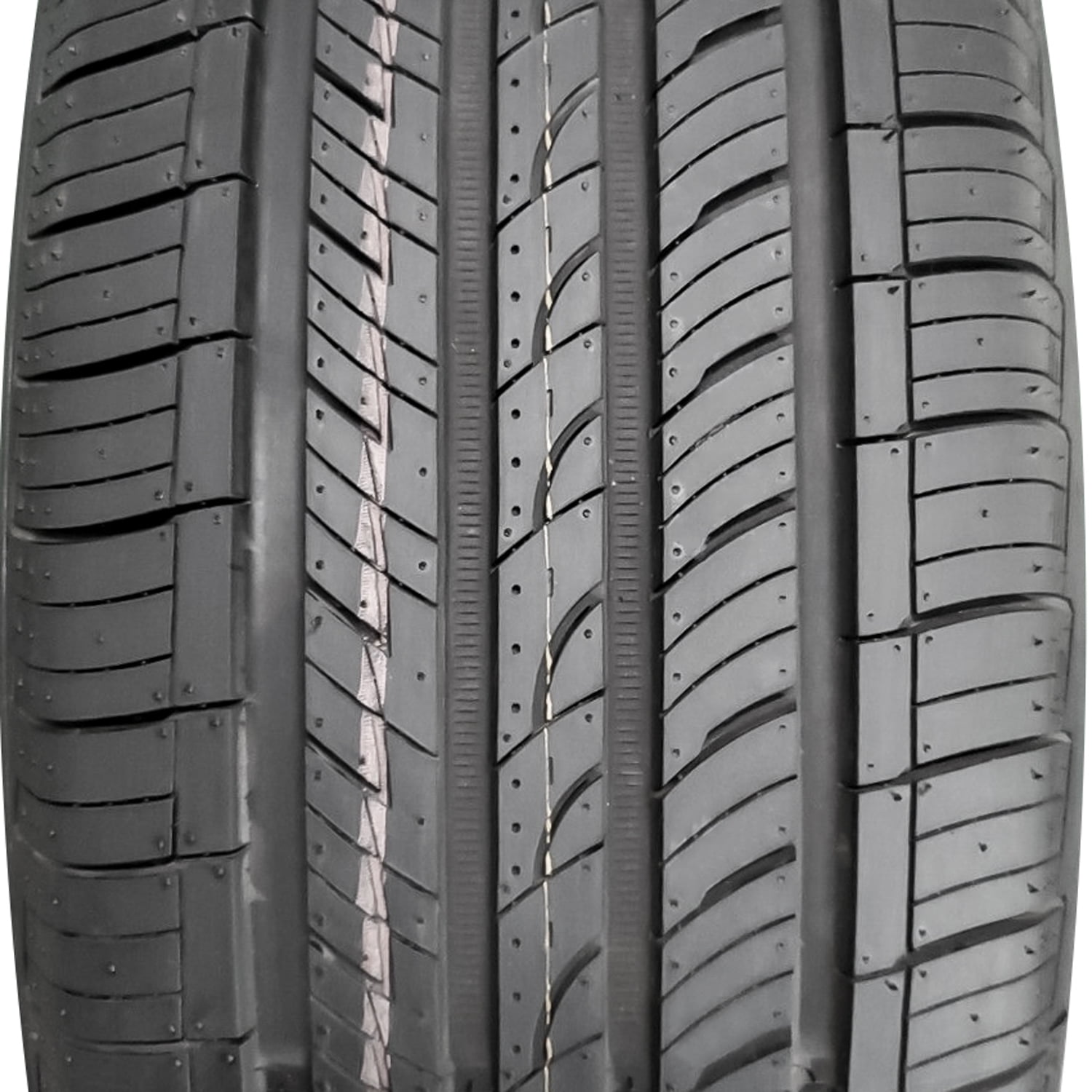 Nexen N5000 Plus OVERVIEW The Nexen N5000 Plus is a touring, all season tire manufactured for passenger vehicles and SUVs. It has some high performance sizes as well. Nexen offers a 65,000 mile treadwear warranty with this model. The special five-rib tread pattern with the circumferential and lateral tread grooves increase the all weather traction and provide first-rate road gripping ability in dry, wet and winter weather. The tread grooves also enhance the wet weather traction and the hydroplaning resistance by eliminating water from below the tire footprint. The better road gripping and water dispersing abilities ensure a safe driving experience all year. The tire is also effortless to handle. The boosted driving stability and steering responsiveness ensure good controllability in all weather. The internal groove serration improves the driving stability, while the tread block stiffness of the tread and shoulder area of the tire upgrade the steering responsiveness. Both are advanced with the enhanced road contact. The maintained road contact ensures that the tire is stabilized against the driving pressure and that its steering responsiveness is quick and precise. The better road gripping ability ensures a safer and more responsive controllability. The tread pattern’s shoulder tread blocks strongly grip the road during cornering and maneuvering situations. The additional biting edges they provide in all weather ensures a safe drive and easy maneuvering. The better cornering ability upgrades the model’s performing capability, as it promotes maintained road contact in dry, wet and winter weather. The tread design’s lateral grooves promote a quiet and comfortable driving experience. The lateral grooves channel the soundwaves through the tire footprint and prevent them from coming into contact with the tread elements. In this way, the pattern noise is not generated and the road noise levels heard in the vehicle’s cabin are reduced, making the drive more enjoyable. The N5000 Plus promotes a longer lasting, even tread wear. The tread design features heat distributing dimples that spread the built-up heat evenly across the tread area. This prevents irregular wear patterns from forming along the tread and offers an extended usability and tread life. Manufacturers recommend changing tires every 10 years. As long as tires are properly stored before they are sold, the year of their manufacture will not shorten their service life.
