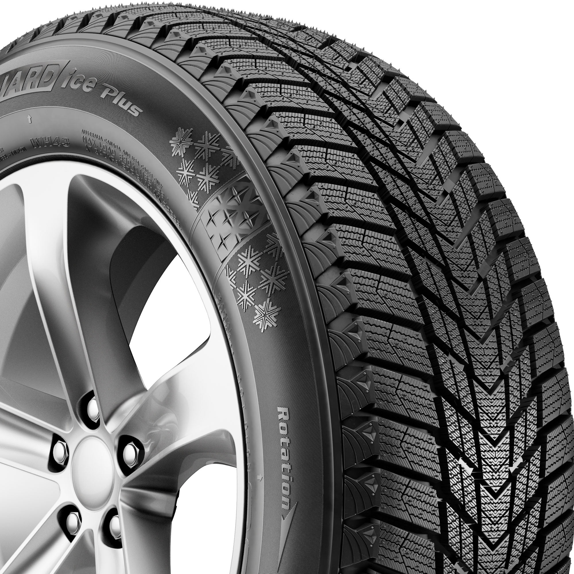Nexen Winguard Ice Plus 235/45R18 98T XL OVERVIEW Nexen’s Winguard Ice Plus is a studless Nordic winter tire that’s built for use on passenger cars. The Winguard Ice Plus features a dual V-shaped design that enhances grip and braking performance, and four main grooves that drain snow, slush, and water away from the tire to reduce the risk of hydroplaning. Additionally, the Winguard Ice Plus also utilizes stiff shoulders for better durability.