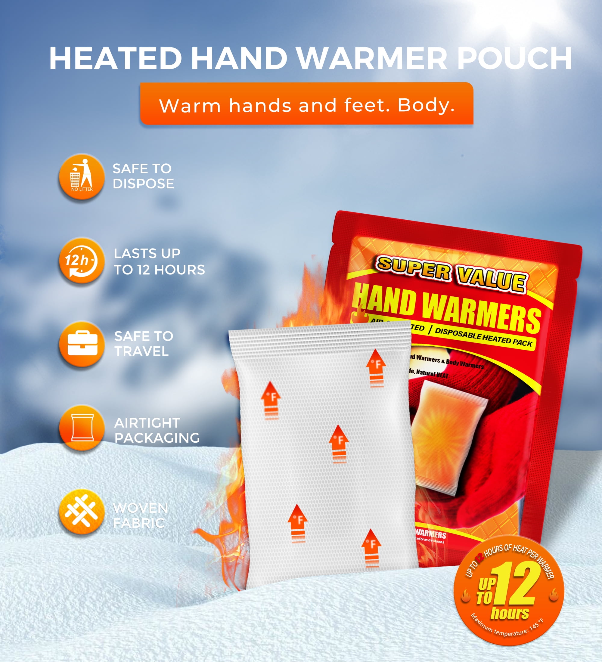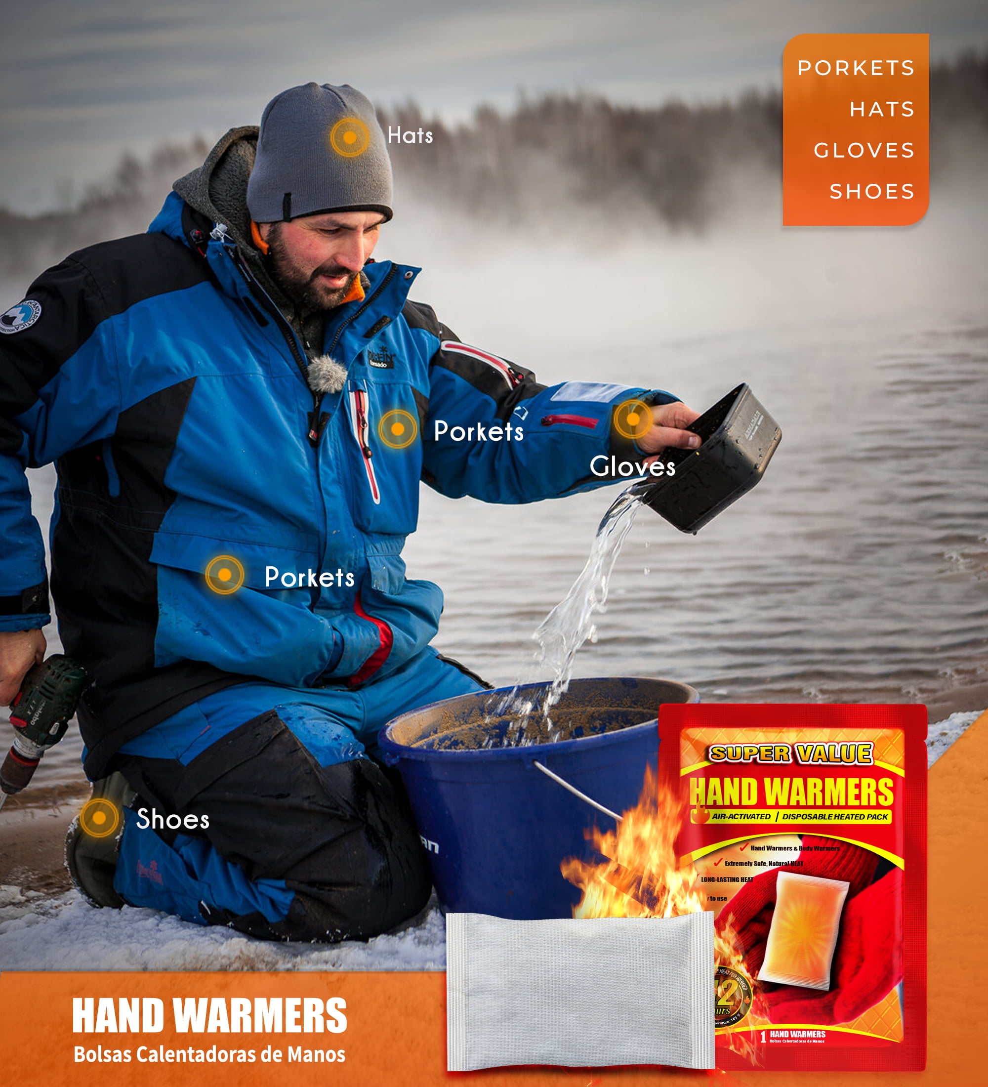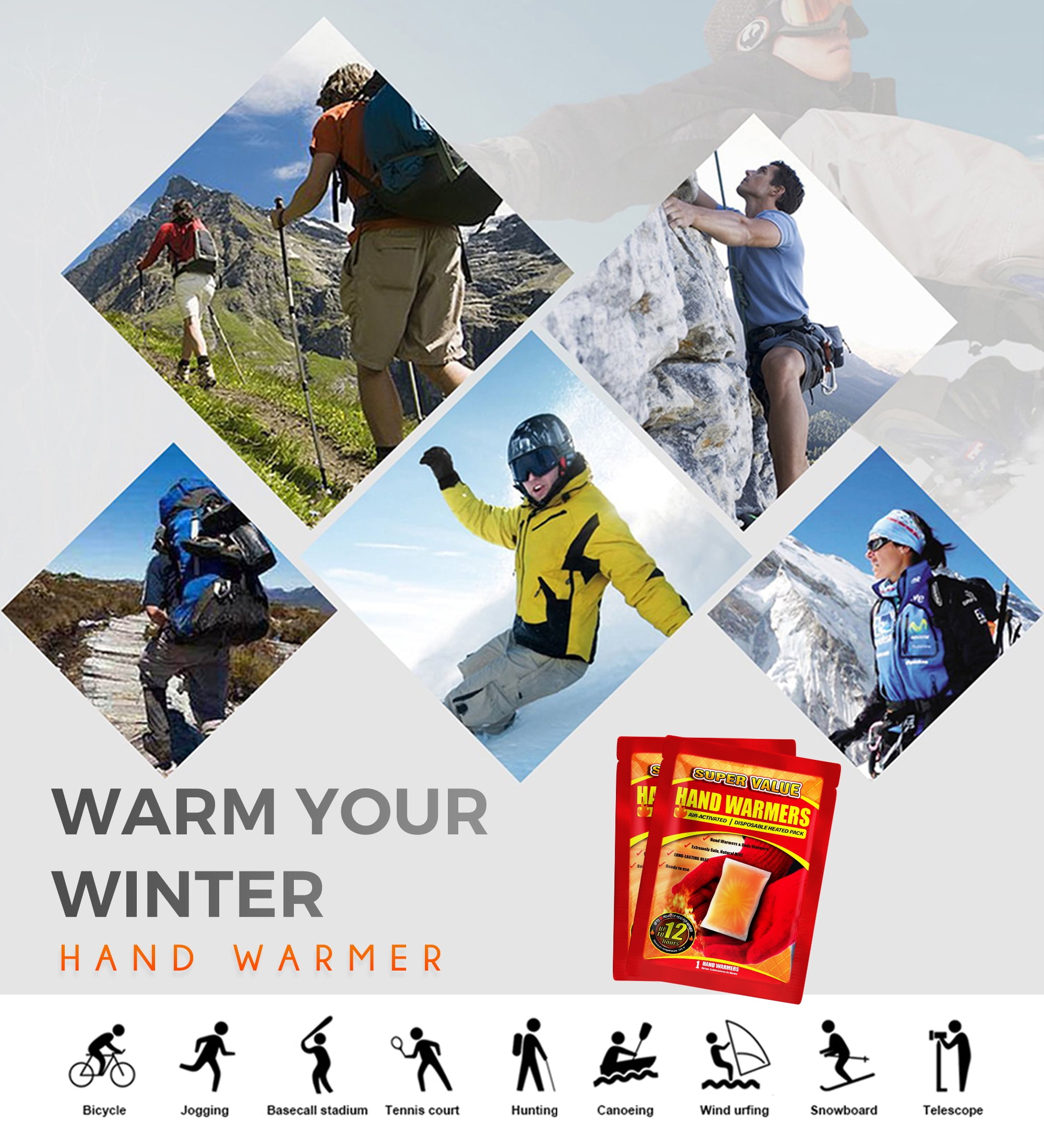 NFTIGB Hand warmers Bring the Heat for you in winter, which are single use air-activated heat packs that provide everyday warmth and are ideal for keeping your hands warm when the temperature gets cold. They provide safe, natural heat, so you can enjoy the great outdoors during those harsh winter months. Our hand warmers are designed to fit in your pockets or the palm of your hand. Convenient, Compact, Portable. Thoughtfully designed so you can enjoy anytime, anywhere. Directions: Do not open the outer package until ready to use. Remove warmer from the outer package: shake to activate. Do not open, puncture, or tear warmer. Warmer heats up in 10-15 minutes. If heat decreases, expose warmer to air and shake. After use, dispose with regular garbage. Ingredients will not harm the environment. This Link CONTAINS: 125 individual packed hand warmers.