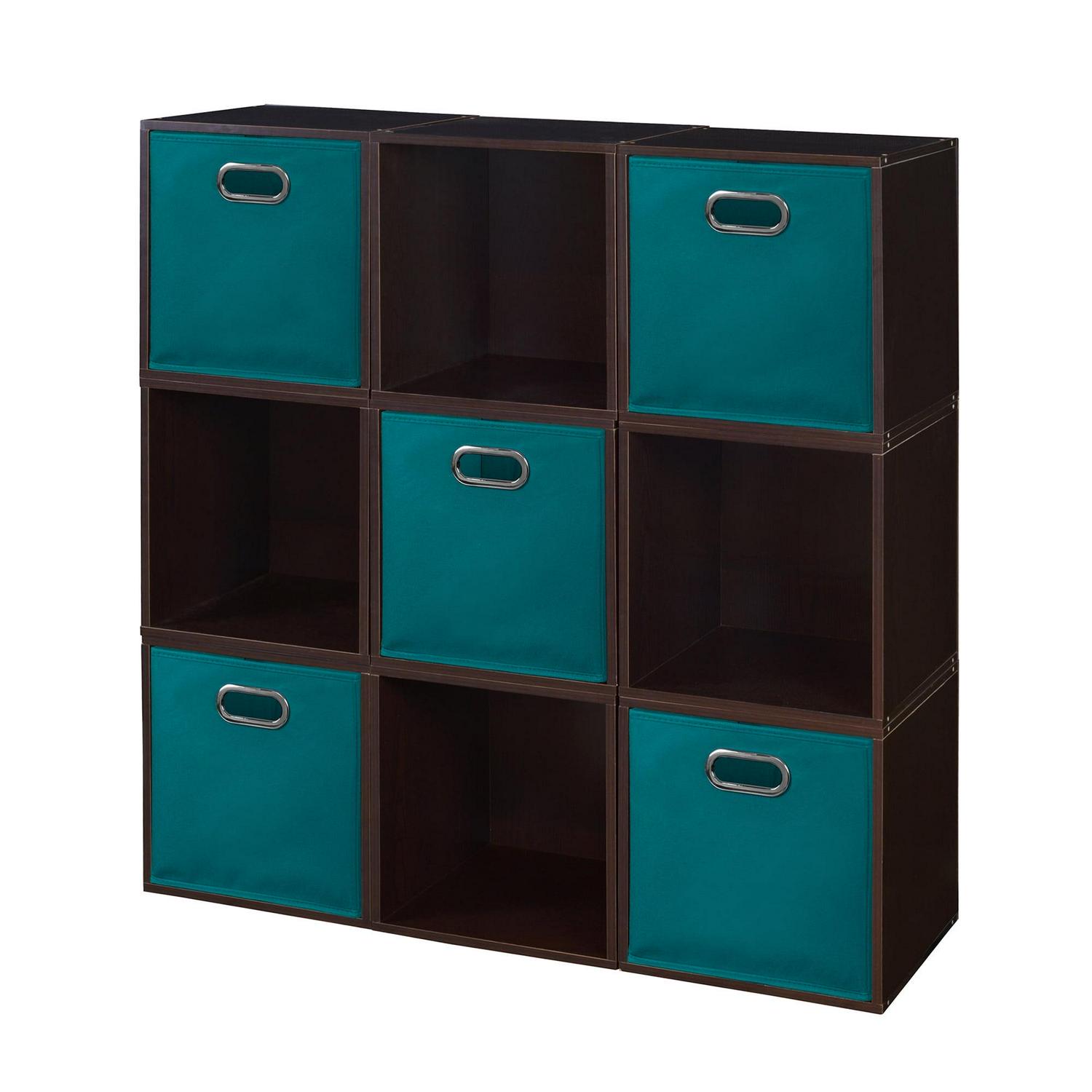 Niche Cubo Storage Organizer Open Bookshelf Set- 9 Cubes 5 Canvas Bins- Truffle/Teal
