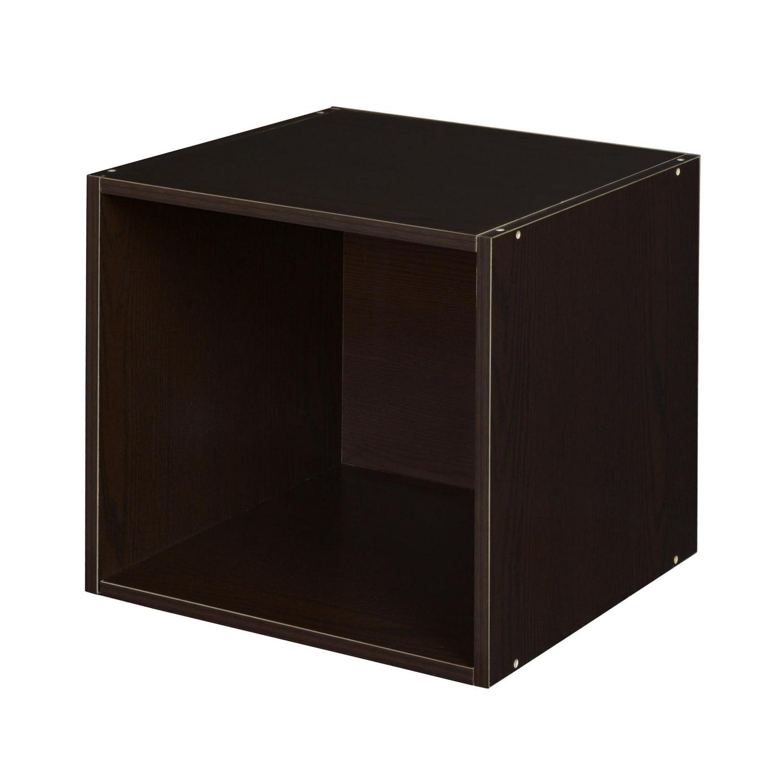 Give your space a clean, uncluttered look with the Regency Niche Cubo Nine Cube Storage Unit with Five Foldable Fabric Storage Bins. The storage bins are outfitted with inset chrome handles to prevent ripping. This modern storage unit is designed with spring-pin connectors that allow you to add more cubes in differing positions to create a custom look. Crafted of sturdy wood, this cube storage unit withstands the test of time and is easily assembled without the use of tools.