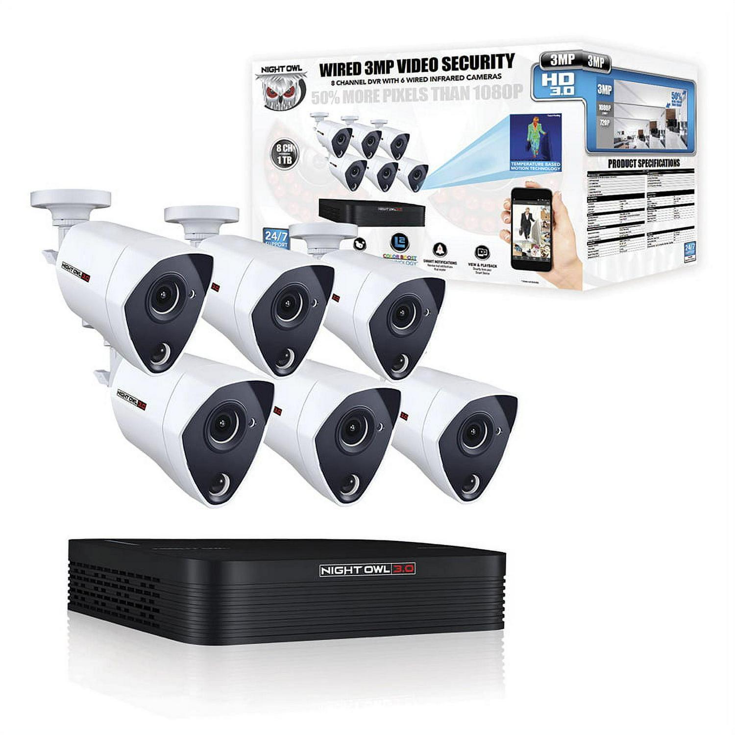 Night Owl 8 Channel 3MP Extreme HD Video Security DVR with 1 TB HDD and 6 x 3MP Wired Infrared Cameras