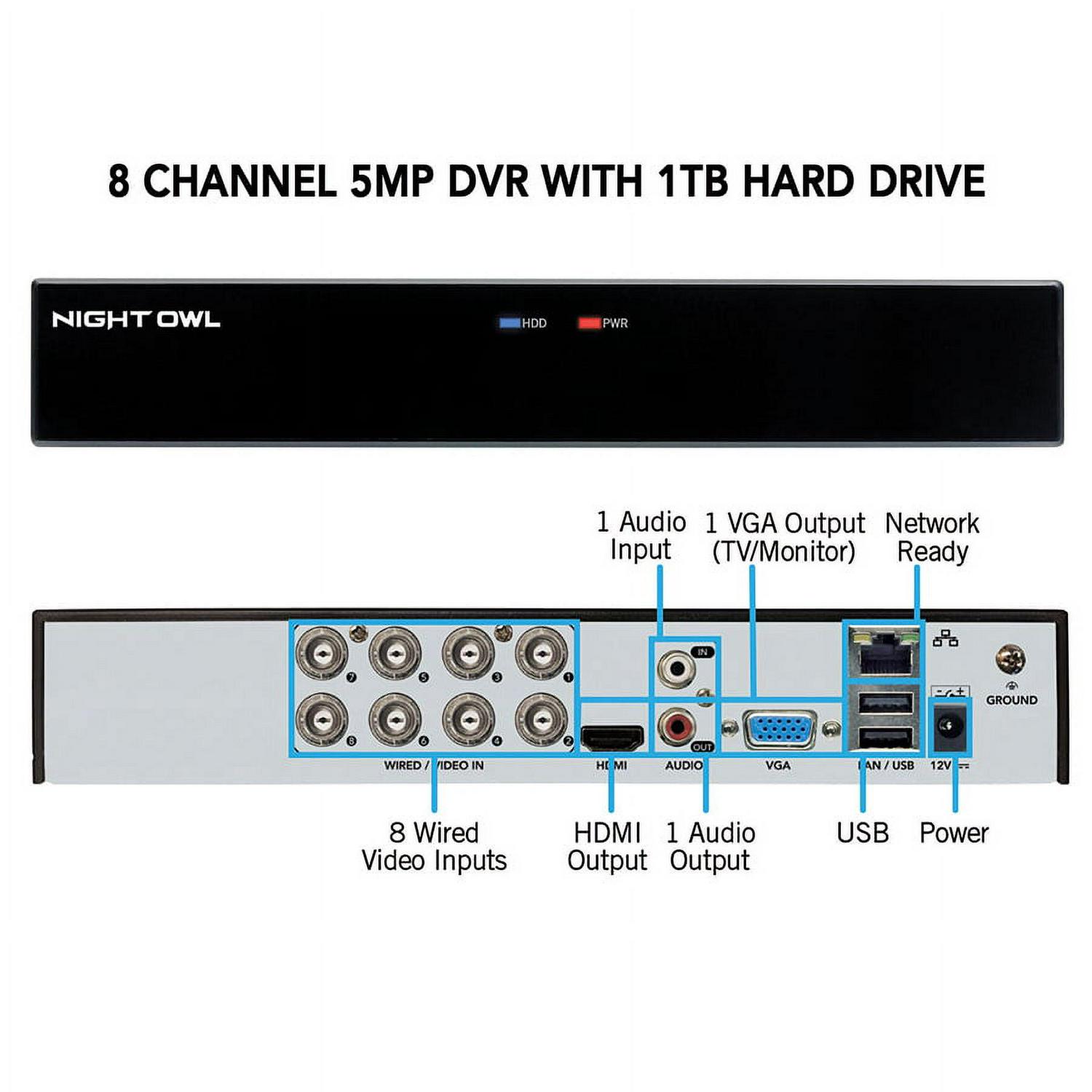 Night Owl 8 Channel 5MP DVR with Human Detection Technology, 1 TB HDD and 6 Light Cameras