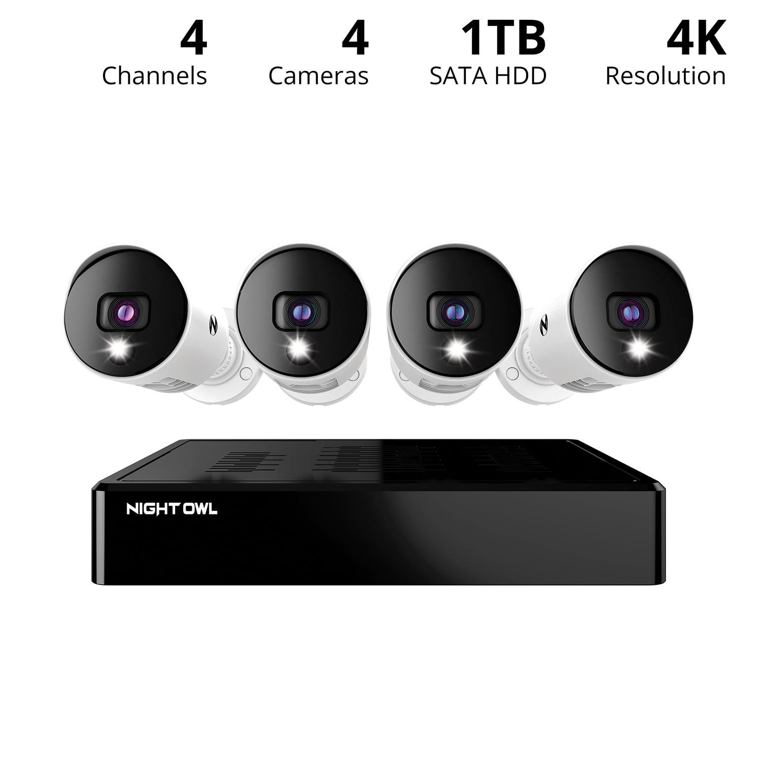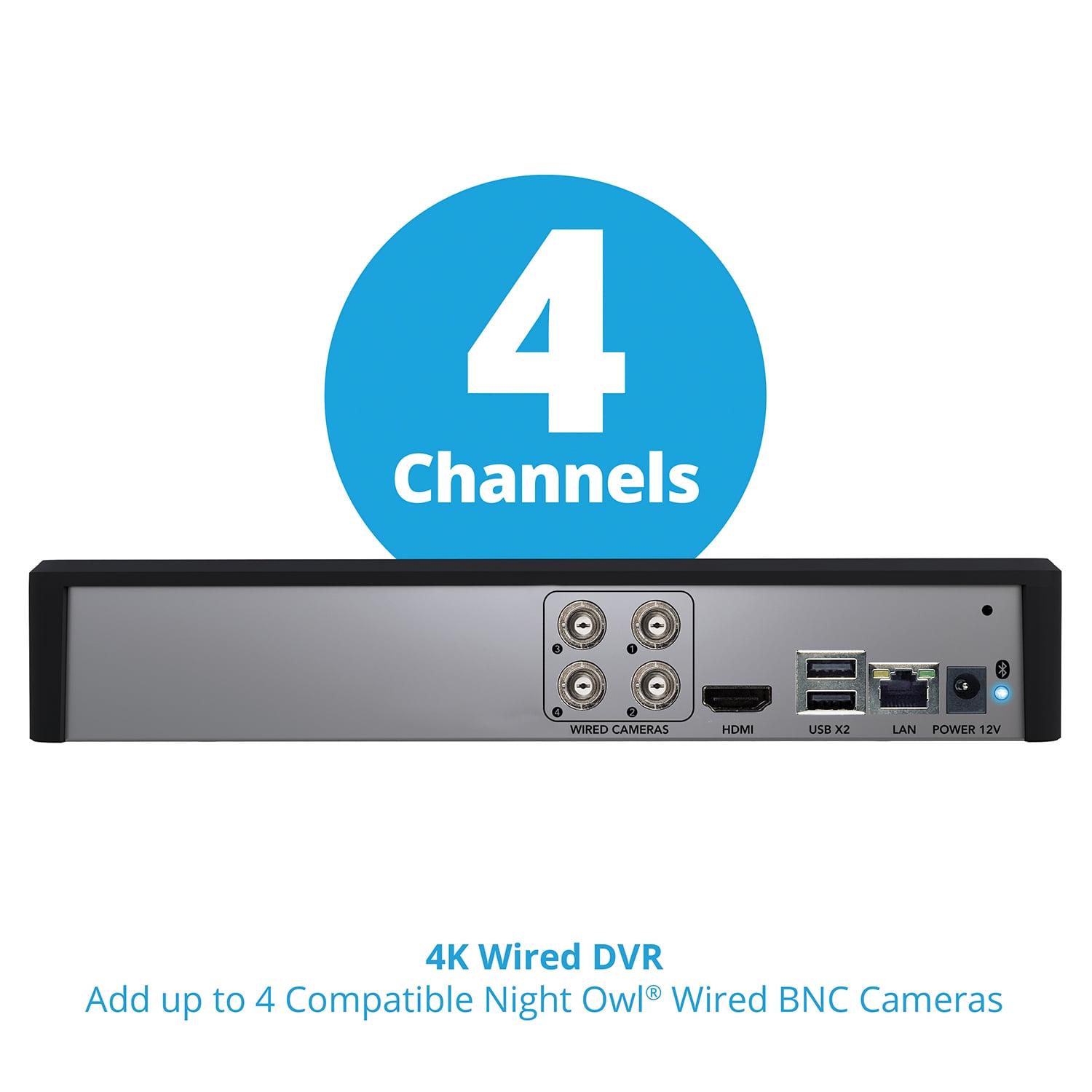 Night Owl Bluetooth 4 Channel 4K Wired DVR, 4 Wired Light Cameras and 1TB HDD