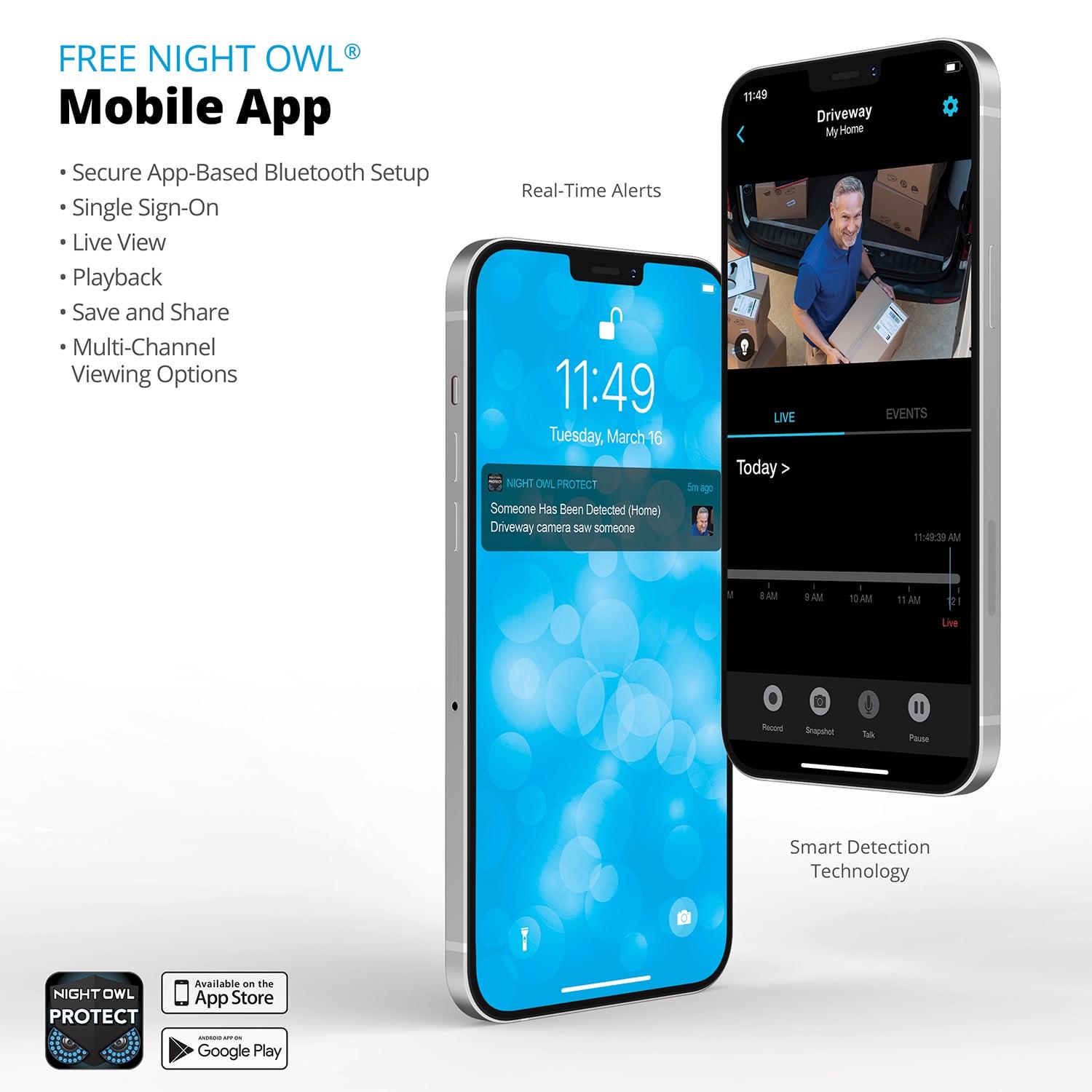 Night Owl is excited to offer our U.S. designed and engineered 1080p HD Bluetooth Digital Video Recorder with Wired 1080p HD Spotlight Outdoor Cameras and Pre-Installed Hard Drive. Secure App-Based Bluetooth Setup. Recorder has built-in Bluetooth technology, making it easy for you to configure your system right from the app on your smartphone or tablet. With Google Assistant you can use simple voice commands to stream camera footage directly to your TV or monitor, all while remaining hands-free. Smart Detection Technology including Human Detection, Facial Capture, and Vehicle Alerts reduces the risk of false alarms, keeping you safe and well protected. Facial Capture lets you see who is on your property by snapping a photo and sending the image to your Smart Device. Motion-activated spotlights flood your yard with bright lights when human motion is detected, instantly warding off trespassers.