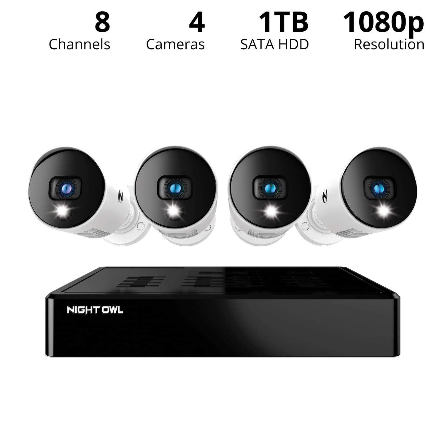 Night Owl Bluetooth 8 Channel DVR with 1TB Hard Drive, and 4 Wired 1080p HD Spotlight Security Cameras, Outdoor, HDMI Connector