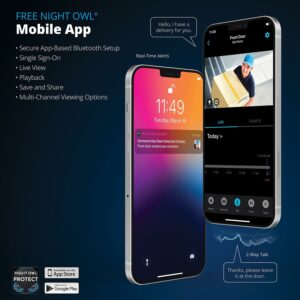 – Free Night Owl Mobile App: Monitor and manage your security camera in real-time from your mobile device.