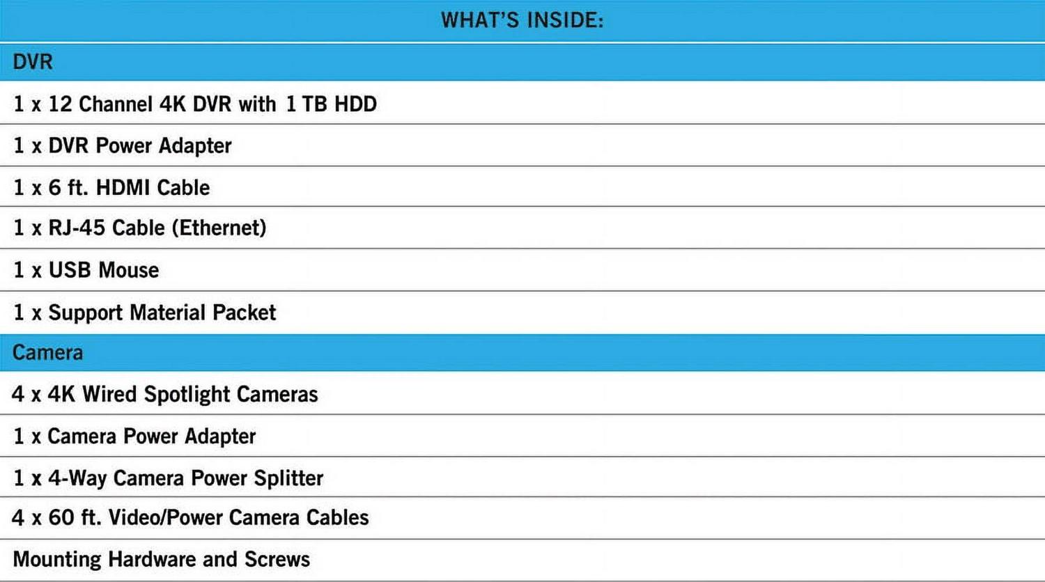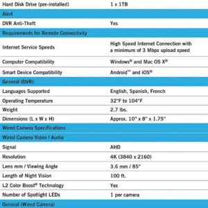 – 12 Channel 4K Ultra HD Wired Video Security System with Pre-Installed Hard Disk Drive