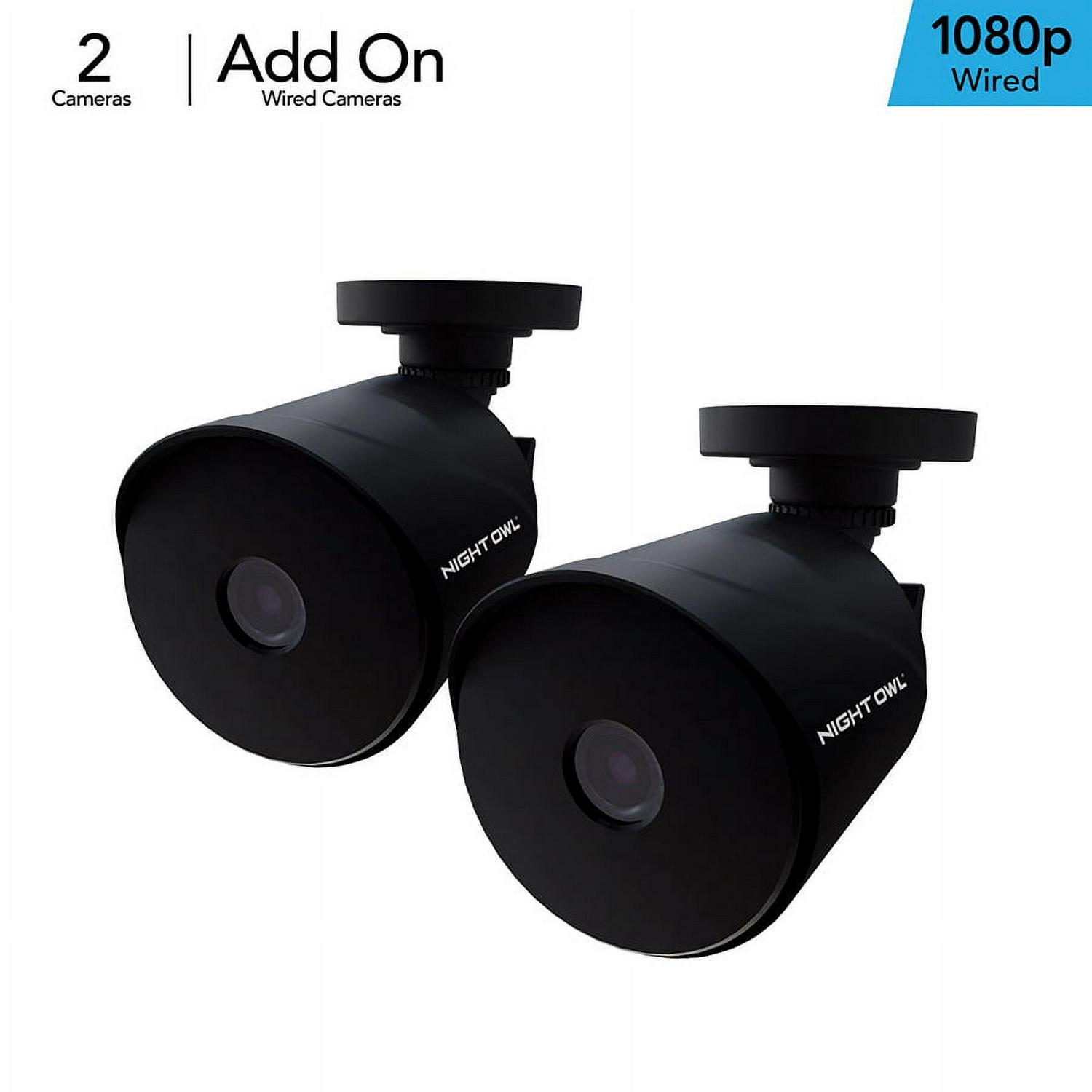 Night Owl Wired 1080p HD Surveillance Bullet Cameras, Indoor Outdoor, Night Vision, Black, 2-Pack, Add to a Compatible Night Owl Recorder