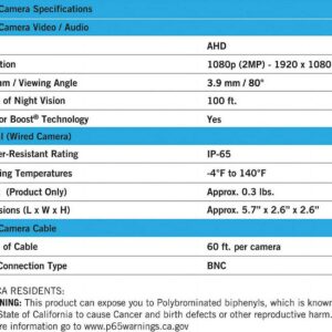 – NOTE: The cameras are specific to the VDP2 and DP2 series and are not backward compatible with other Night Owl wired products.