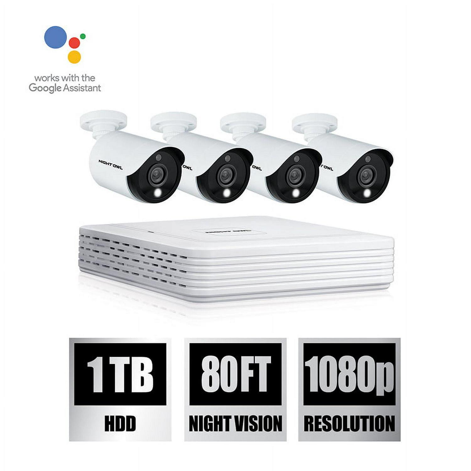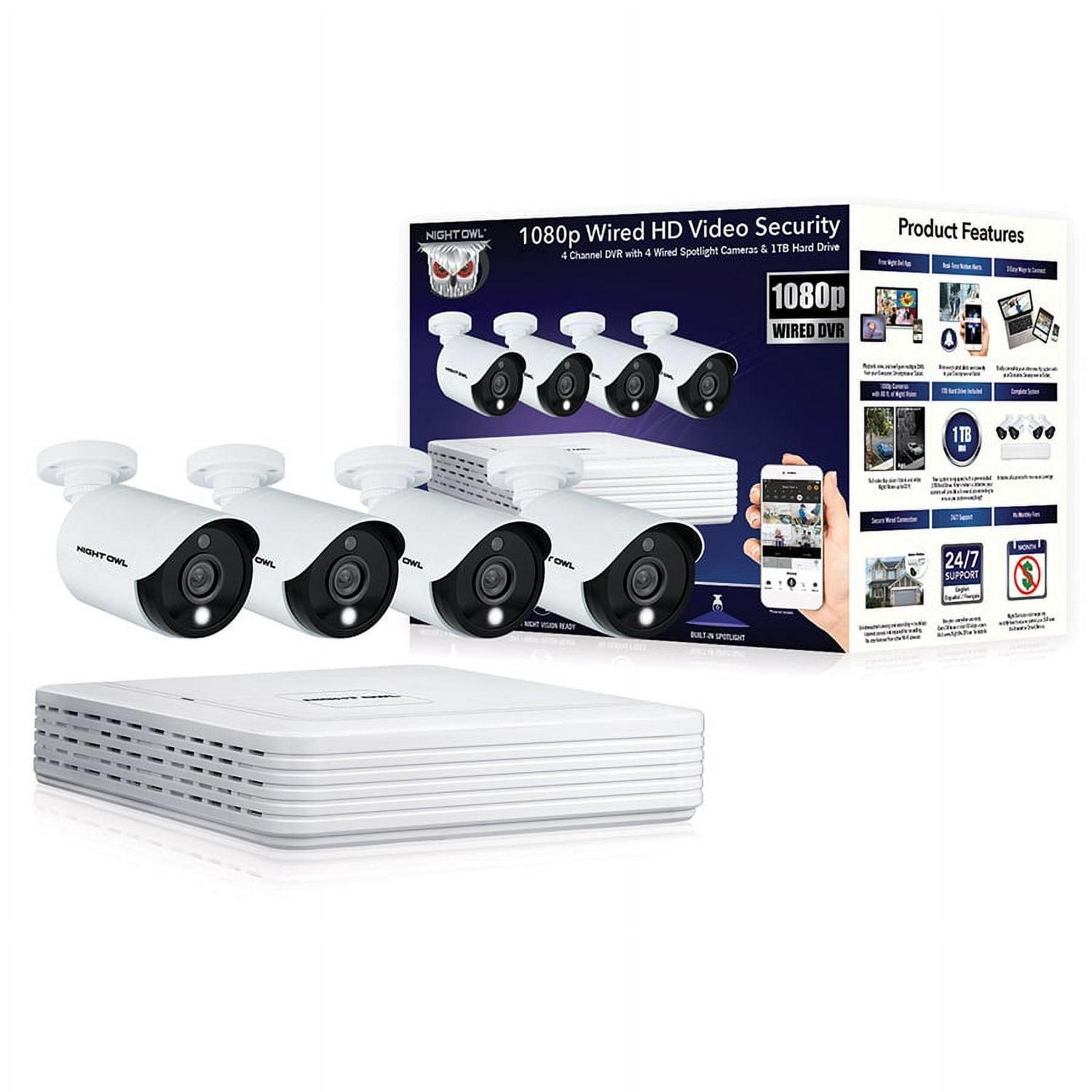Night Owl Wired 4 Channel DVR with Pre-Installed 1TB Hard Drive and (4) 1080p HD Wired Spotlight Cameras